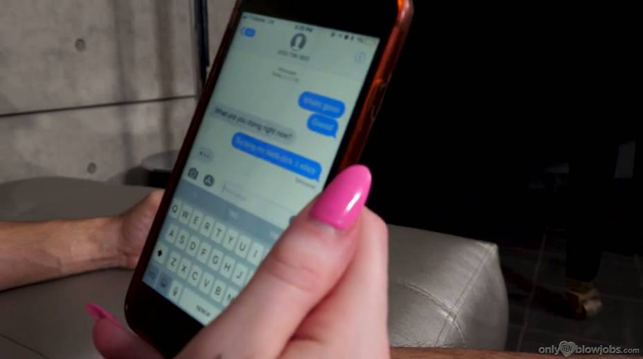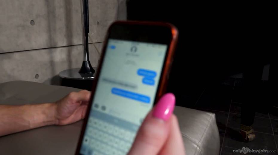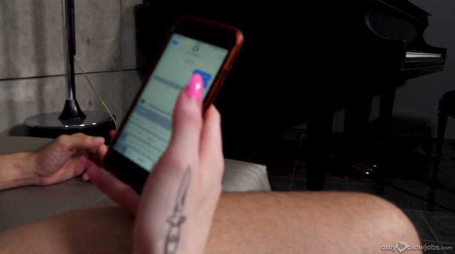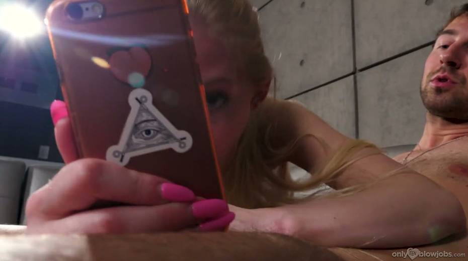 Bitch Emma Starletto is texting her BF while sucking a big hard dick