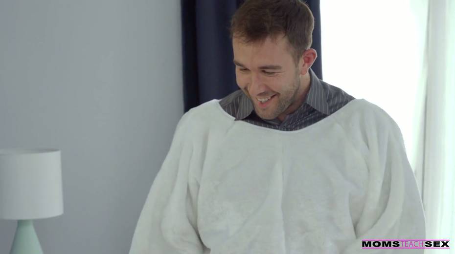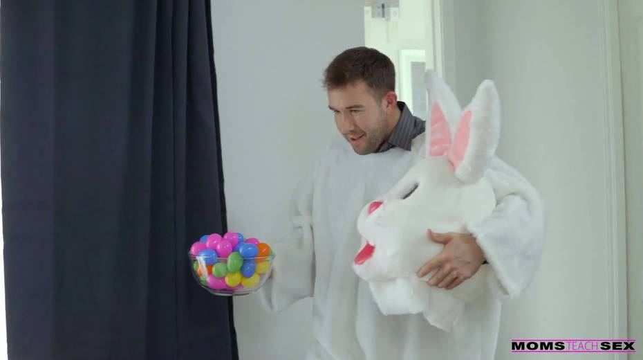 Dude in funny costume fucks stepmom and step daughter early in the morning