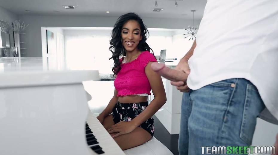 Petite tanned Latin hottie Claire Black is shocked by huge J Mac's dick
