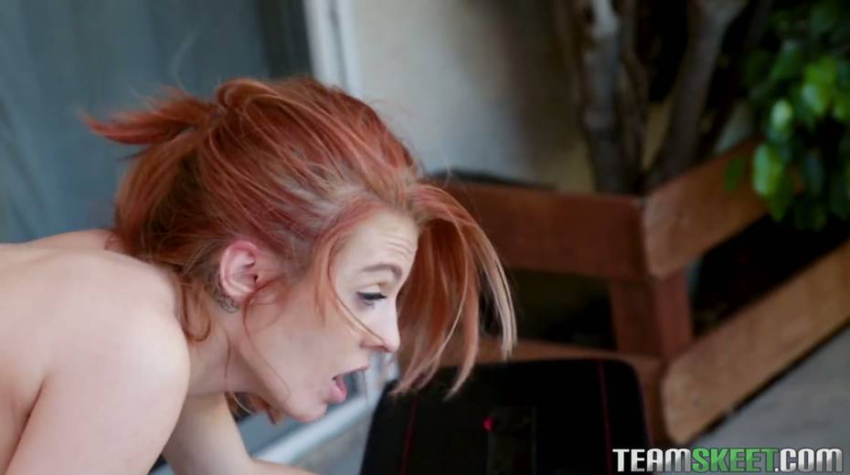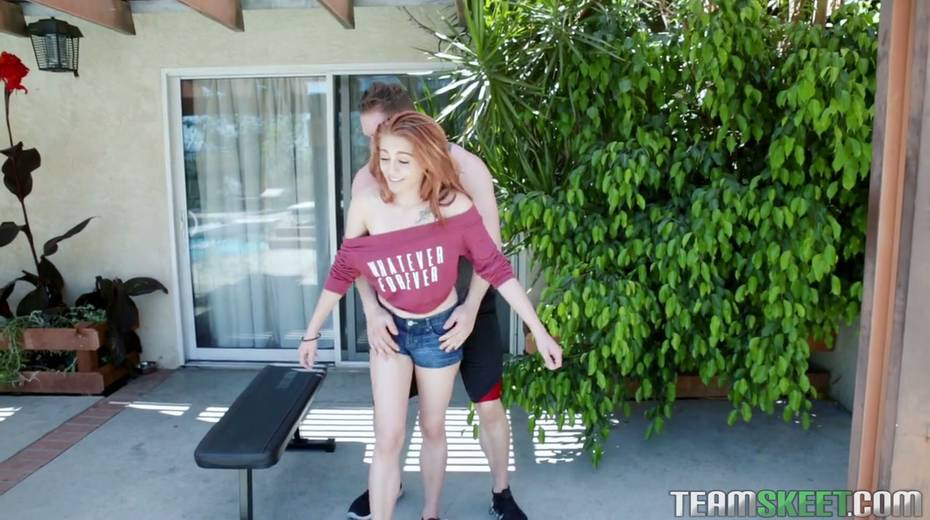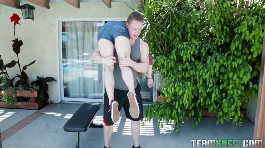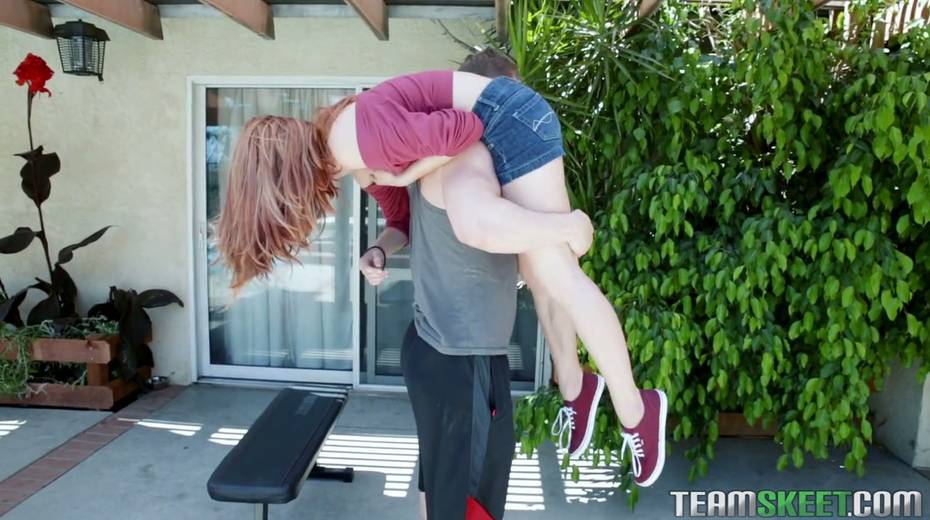 Well endowed jock fucks petite res head Kandi Quinn in flying pose