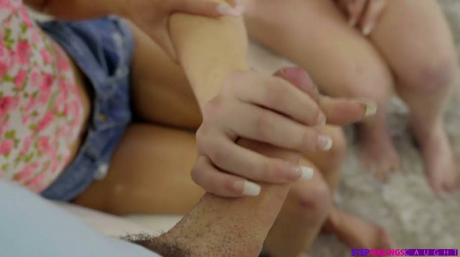 One dude fucks slutty stepsister Jenna Reid and her naughty girlfriend