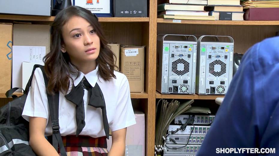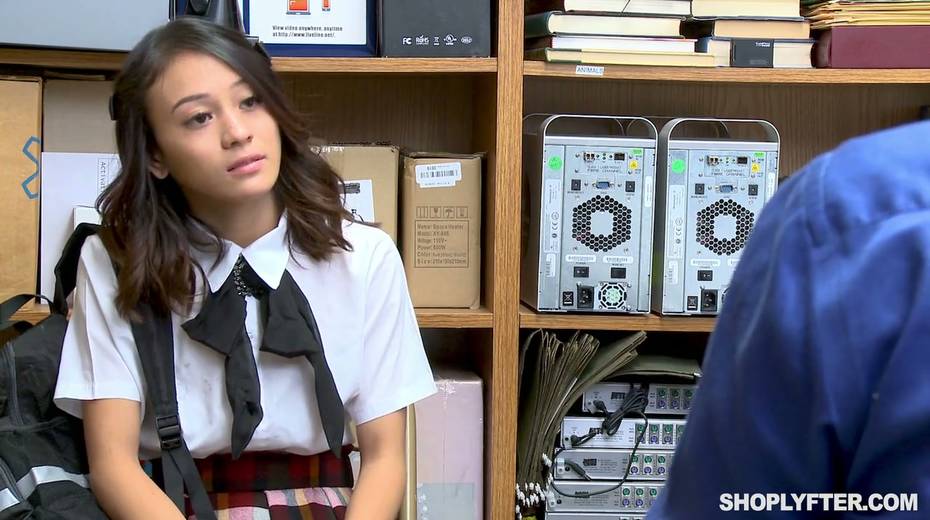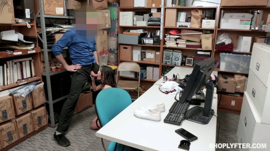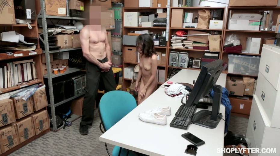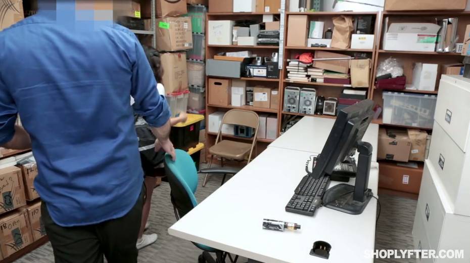Shoplifting chick Jasmine Greyis gets punished in the back room