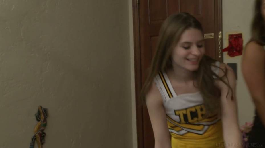 Tanned hottie Eva Lovia is making love with new small tittied cheerleader Gf