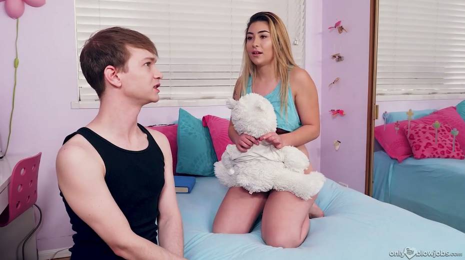 Dude caught his stepsister Serena Sky rubbing pussy all over teddy bear