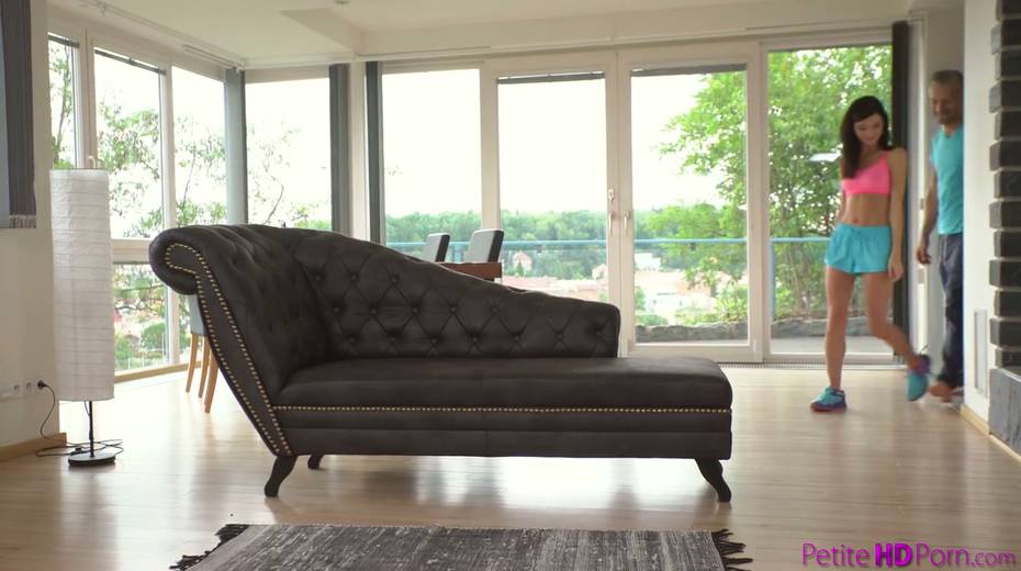 Yoga instructor fucks slender petite hottie Arian and cums in her mouth