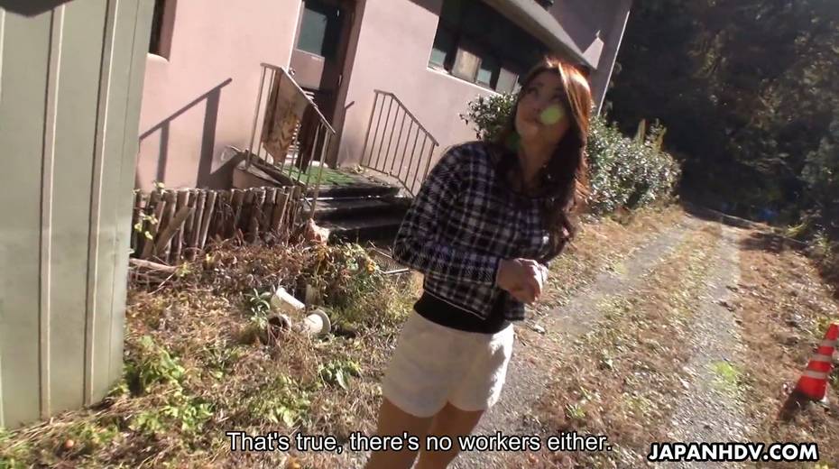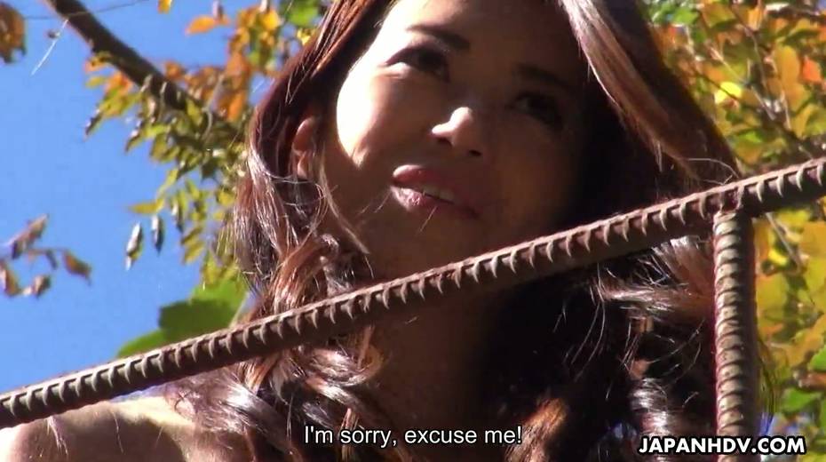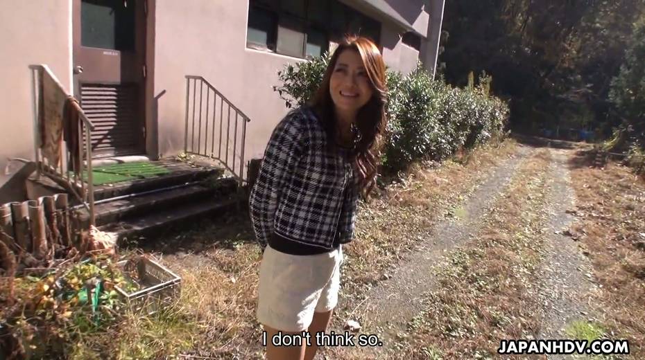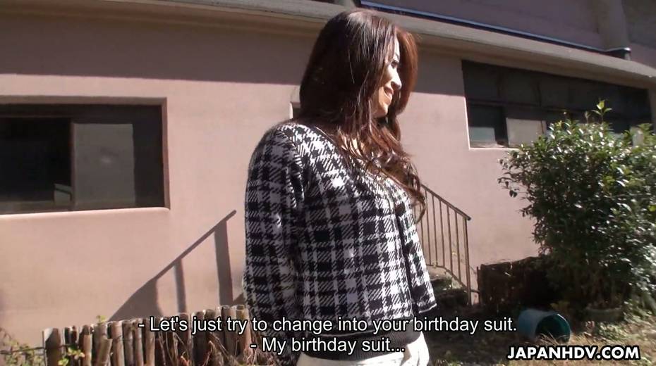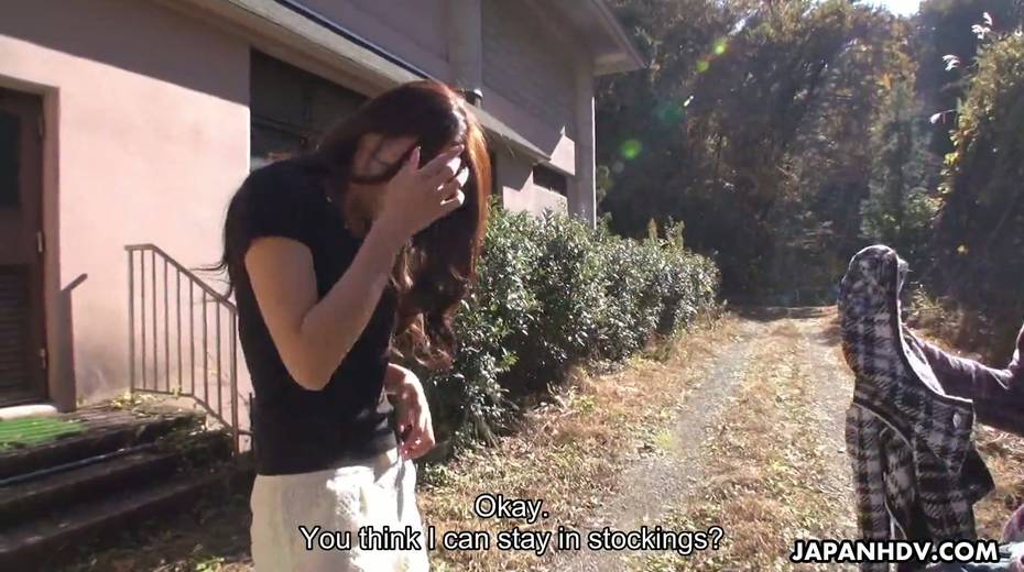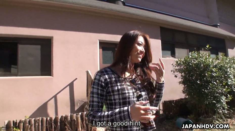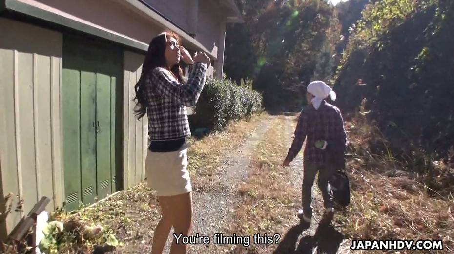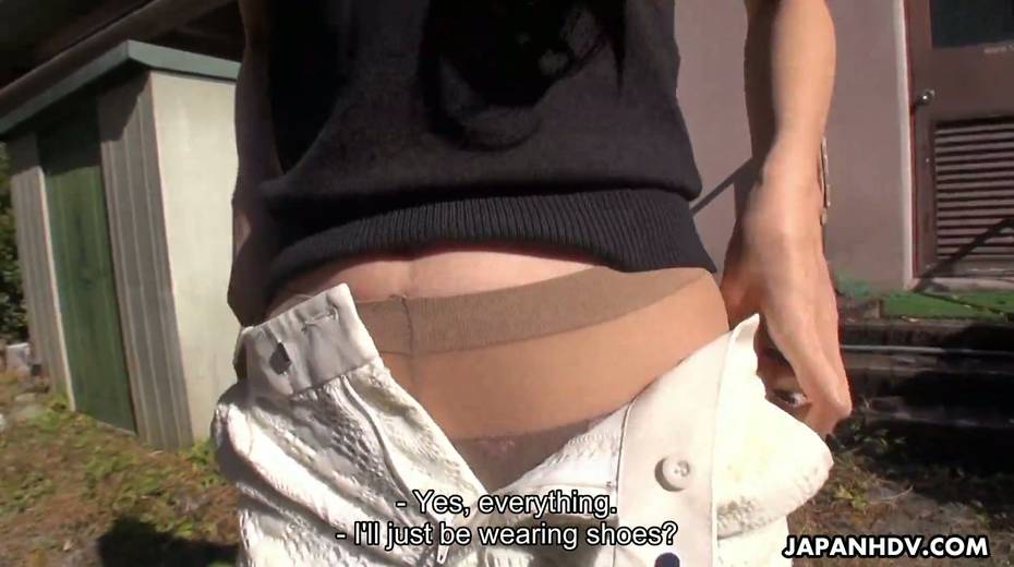Lustful Japanese babe Maki Hojo is playing with her hairy muff outdoor