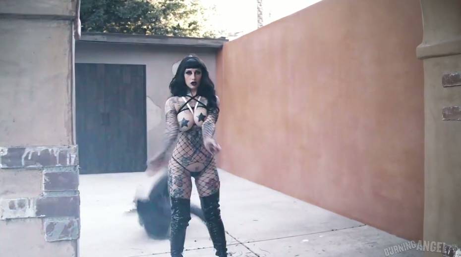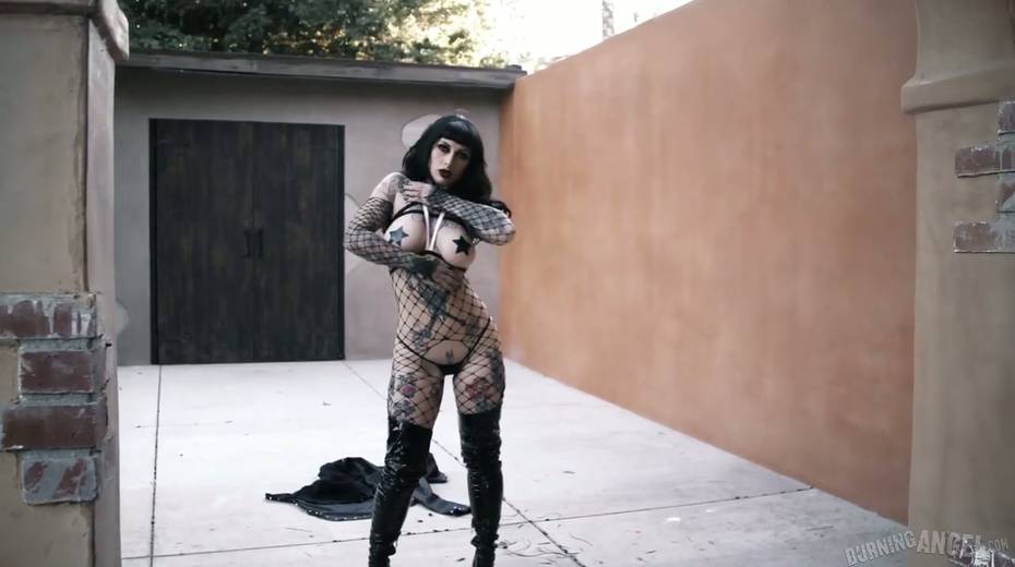 Tattooed hooker in body fishnet Jessie Lee does everything her man desires