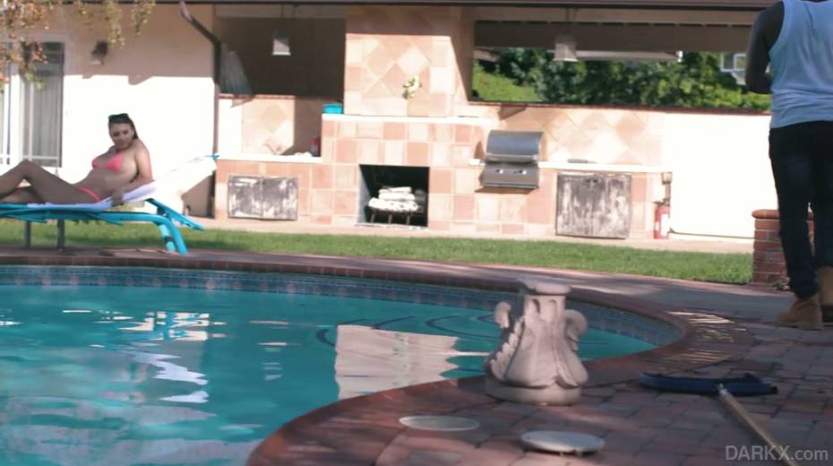 Killing hot white babe Gia Derza is fucked by muscular black dude by the poolside