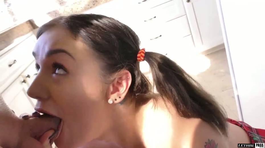 College chick Rosalyn Sphinx gives a rimjob to her stepdad and gets laid