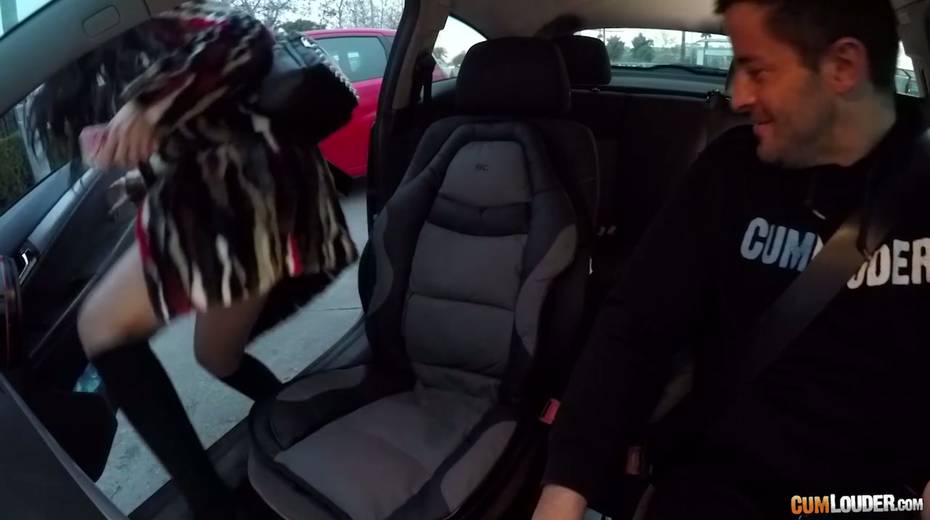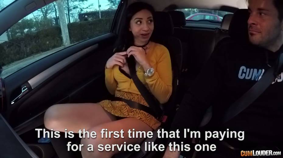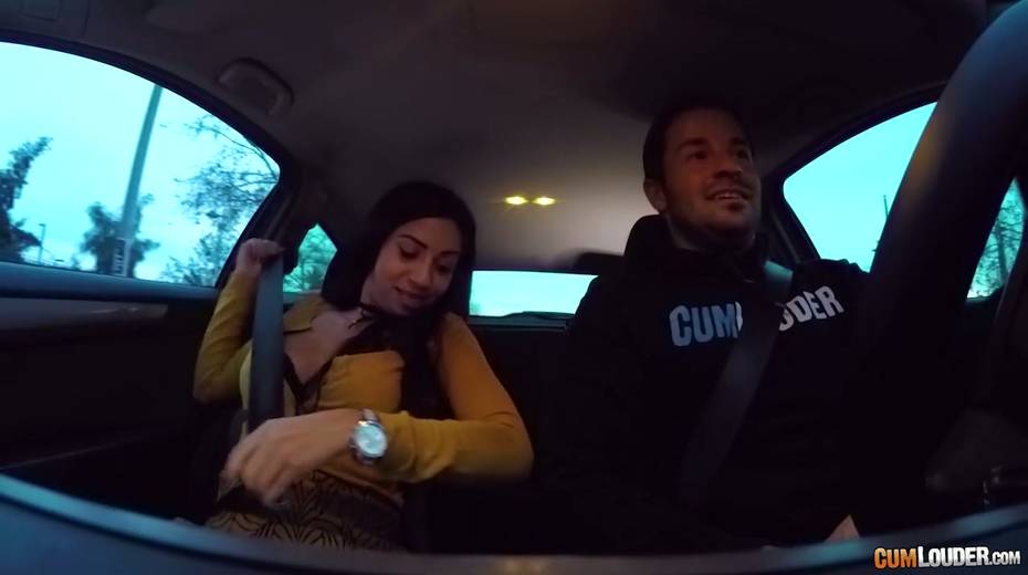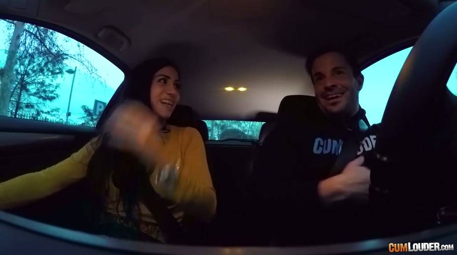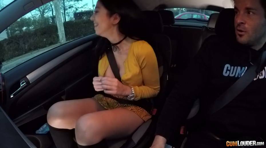 Spanish whore Julia de Lucia gives a blowjob in the car and gets nailed