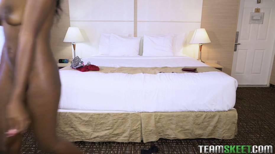 Cute ebony chick Kandie Monaee gets her slit fucked by hot blooded white guy