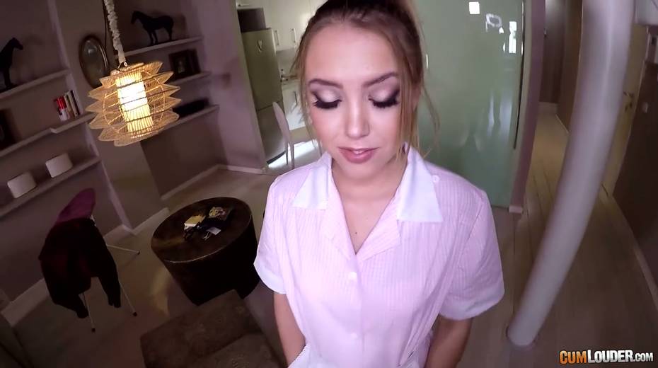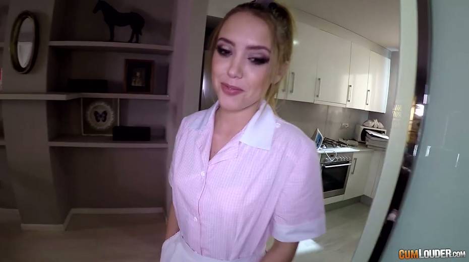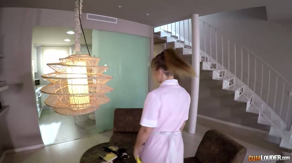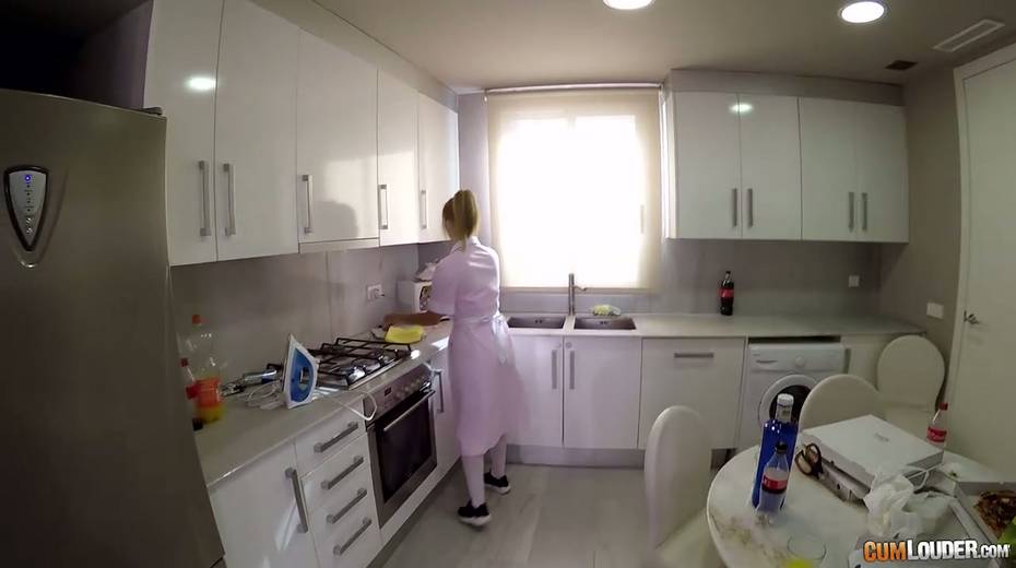 Spanish cleaning babe Zoe Doll polishes a big dick with her mouth and pussy