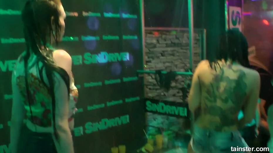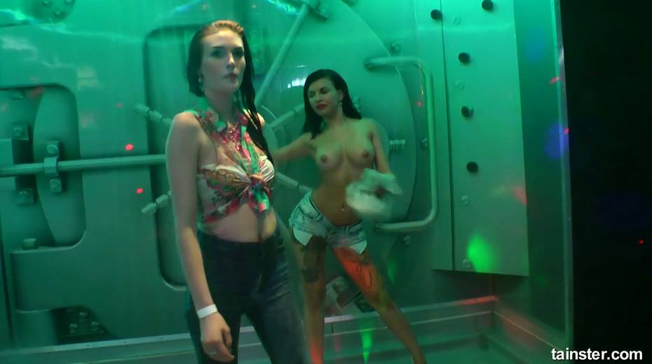 Bald headed male stripper fucks nasty chick under the shower at the party
