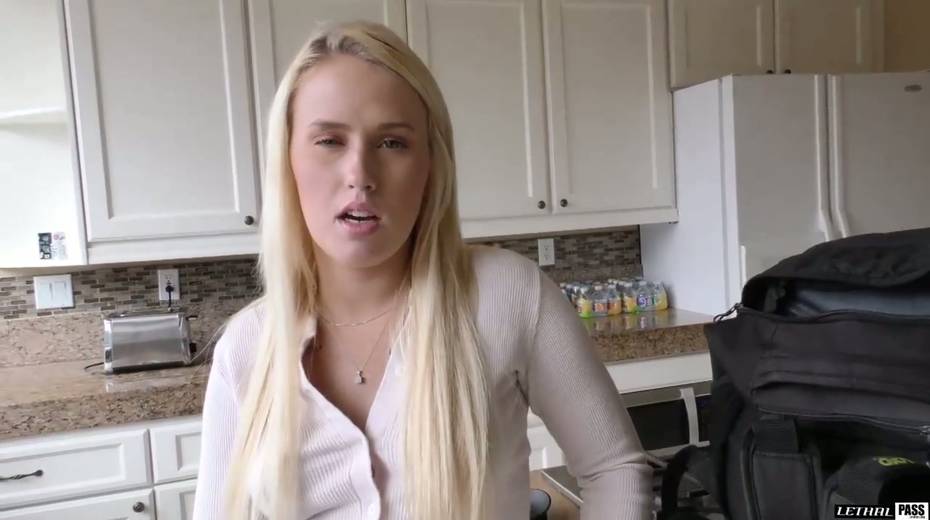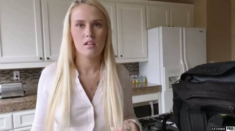 Bootyful blonde in jeans shorts Layla Love gets her pussy fucked
