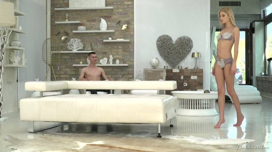 Petite blonde Rebecca Volpetti takes a dick in anal hole and gives a footjob