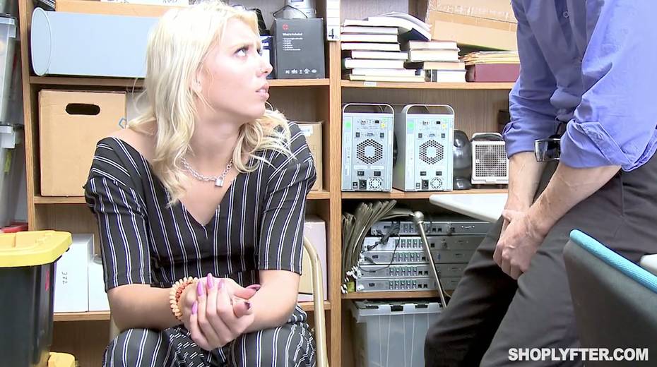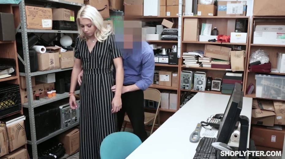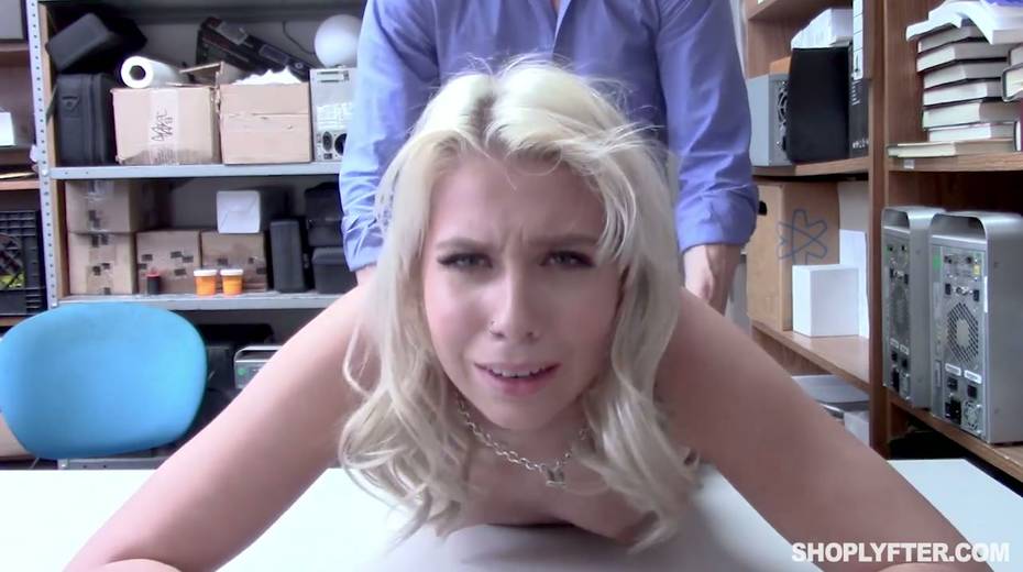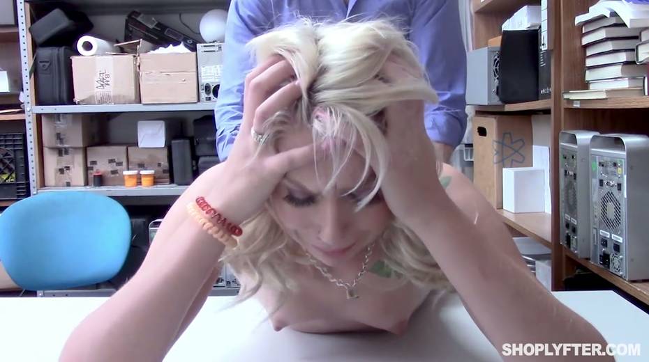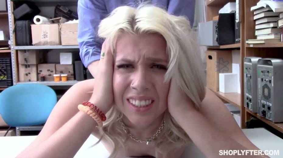 Tattooed chick Chanel Grey gets her mouth and pussy punished for shoplifting