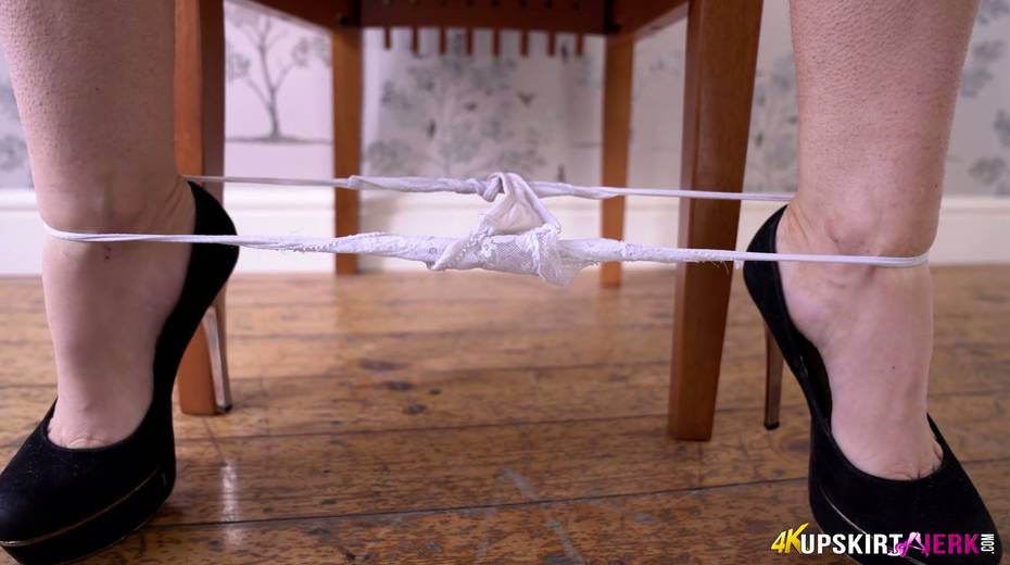 Bitch with neon hair Roxi Keogh shows of her peachy pussy under the table