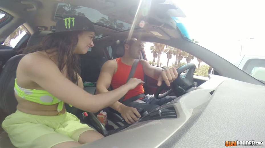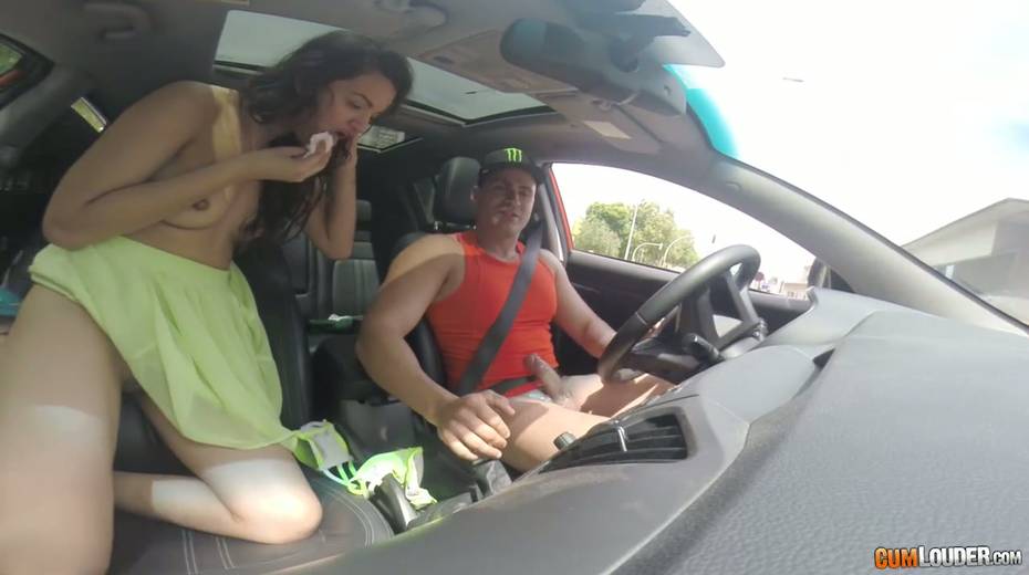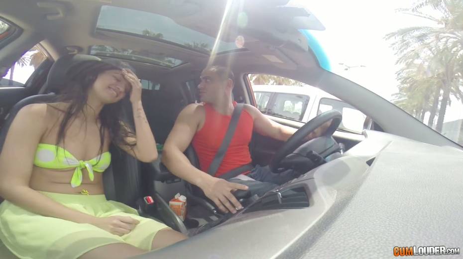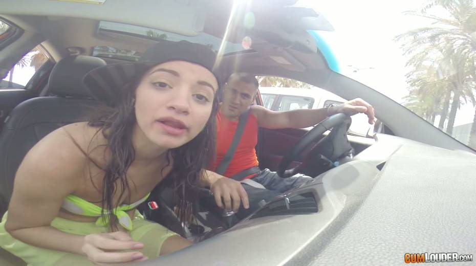 Voluptuous picked up chick Alicia Poz gives a blowjob in the car