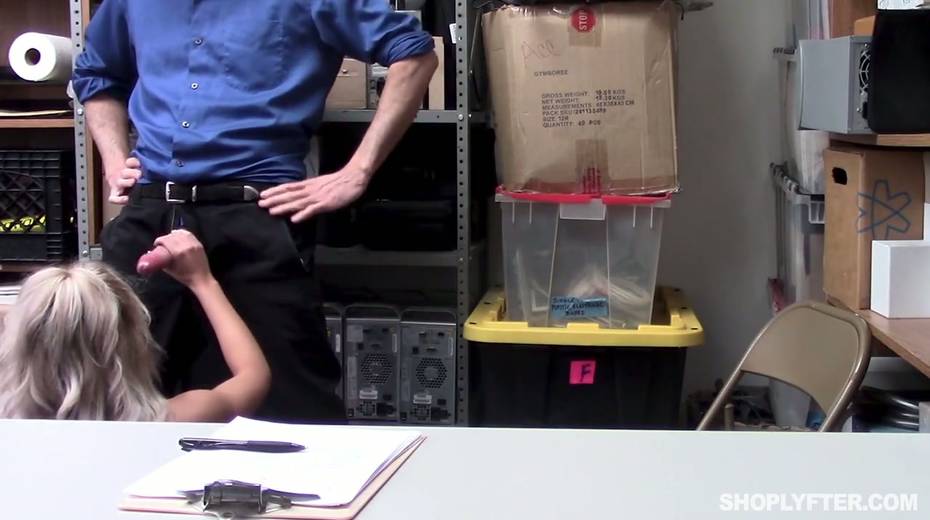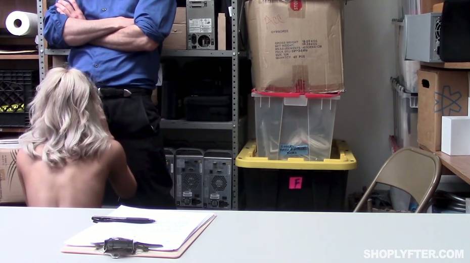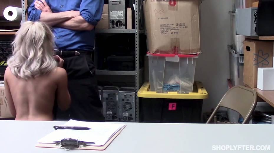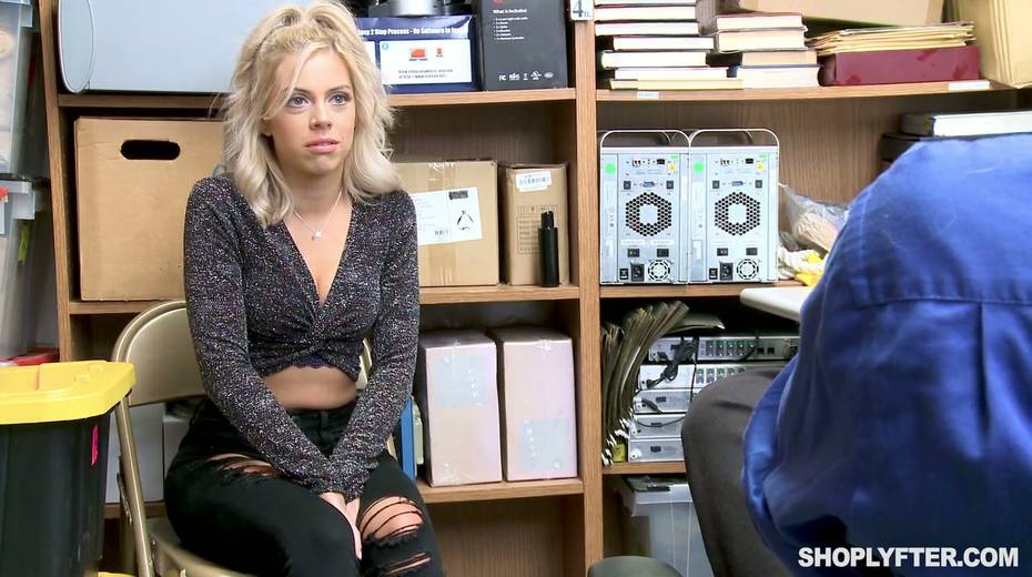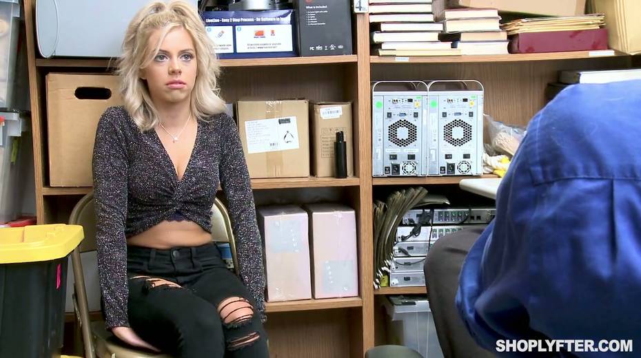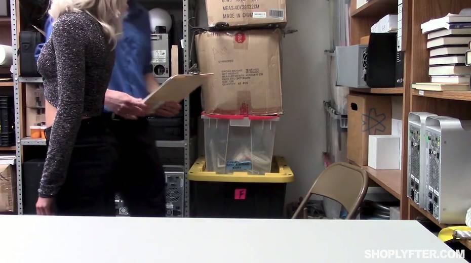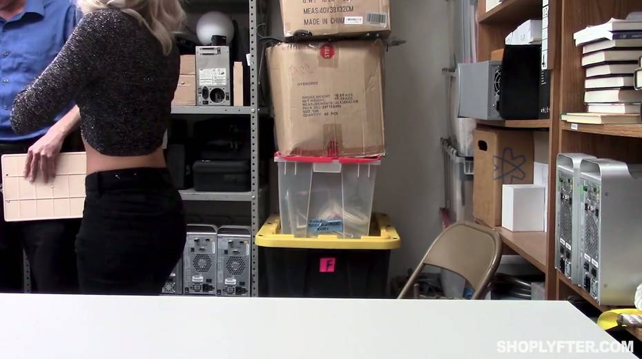 Nasty shoplifting chick Allie Nicole is fucked hard in the back room
