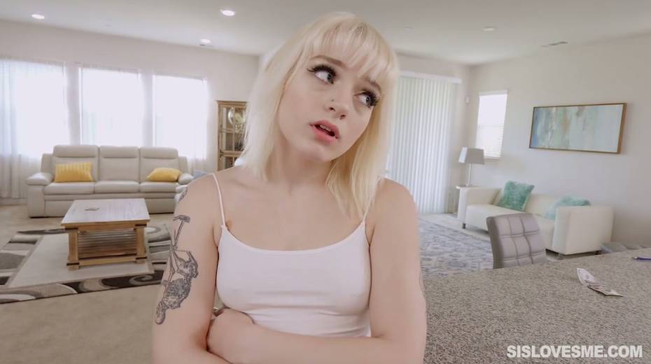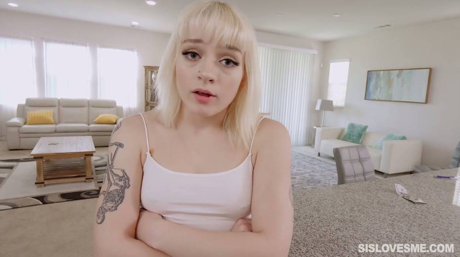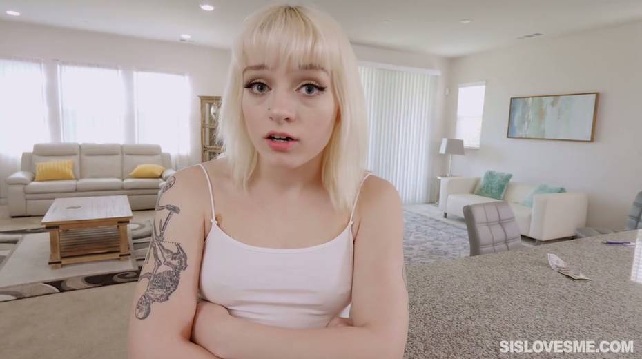 Stupid blond stepsister Naomi Nash gives a blowjob for a piece of pizza