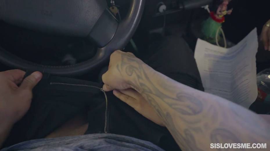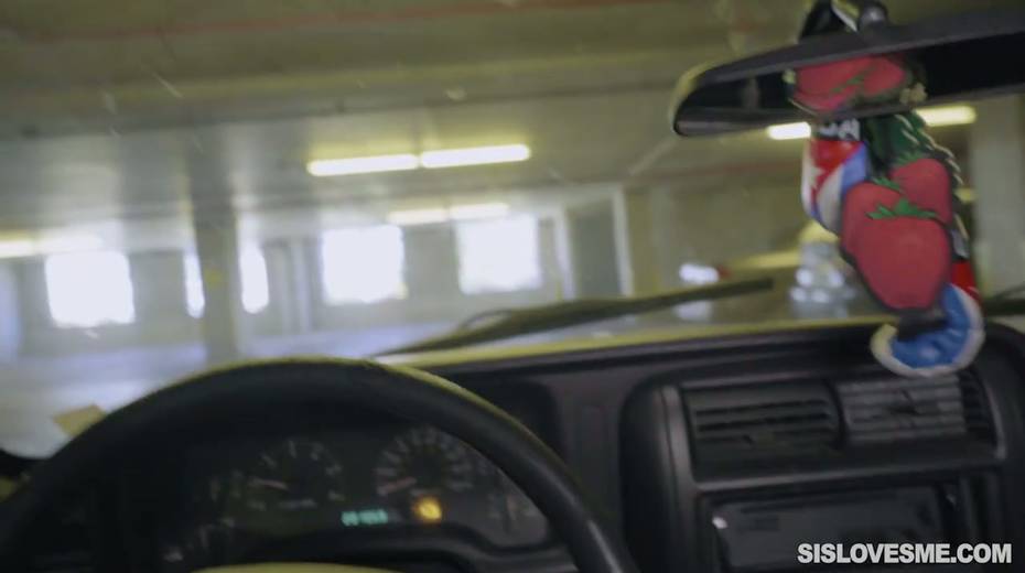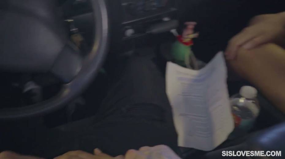 Hot blooded stepsister Nicole Rey sucks in the car and gets her pussy licked 69 style