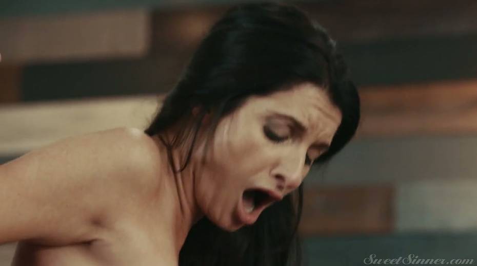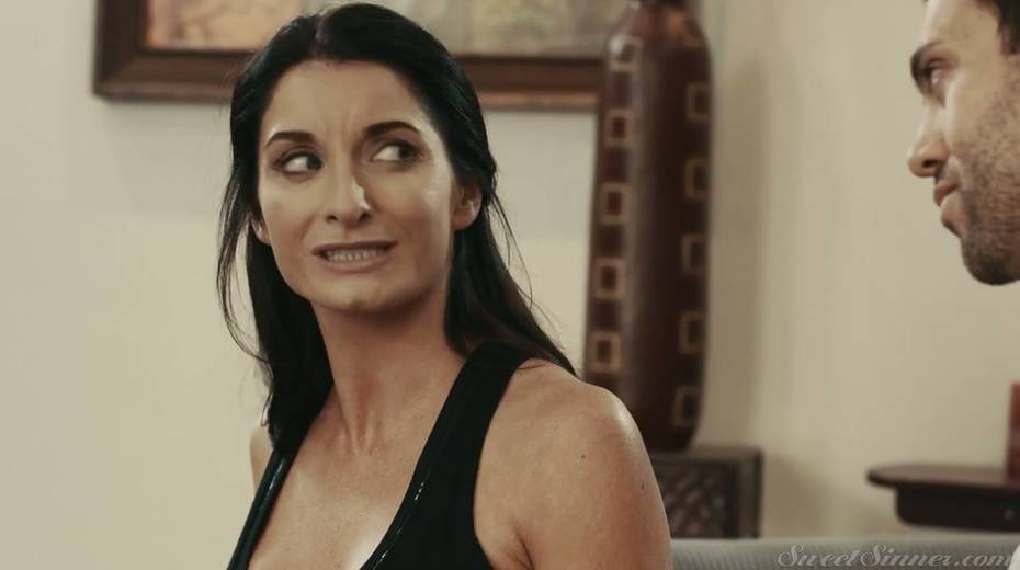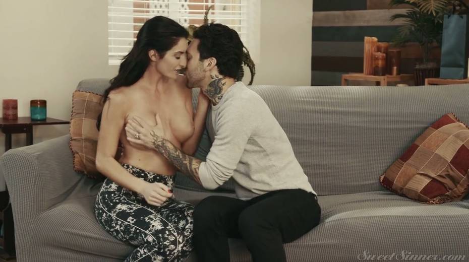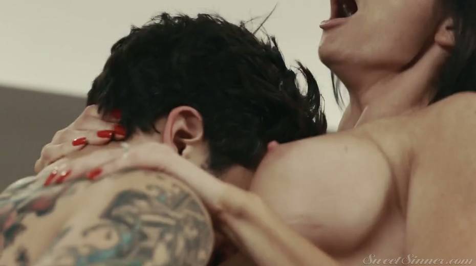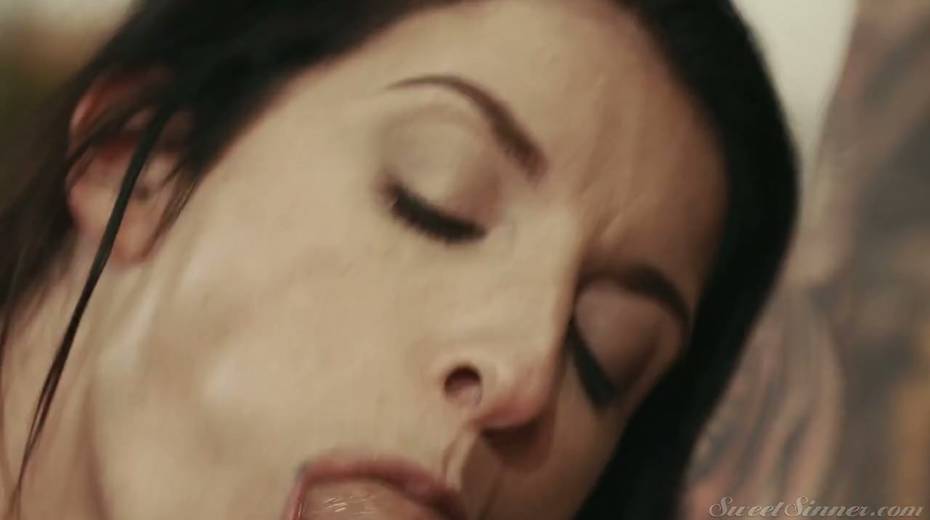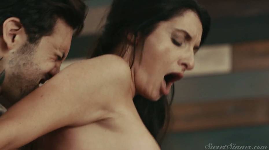 Gorgeous brunette Silvia Saige takes cumshots on her big boobs with perky nipples