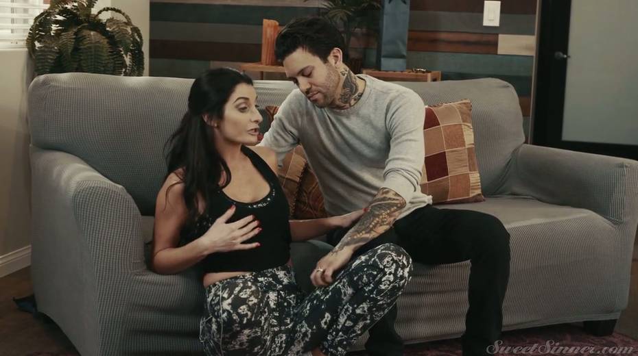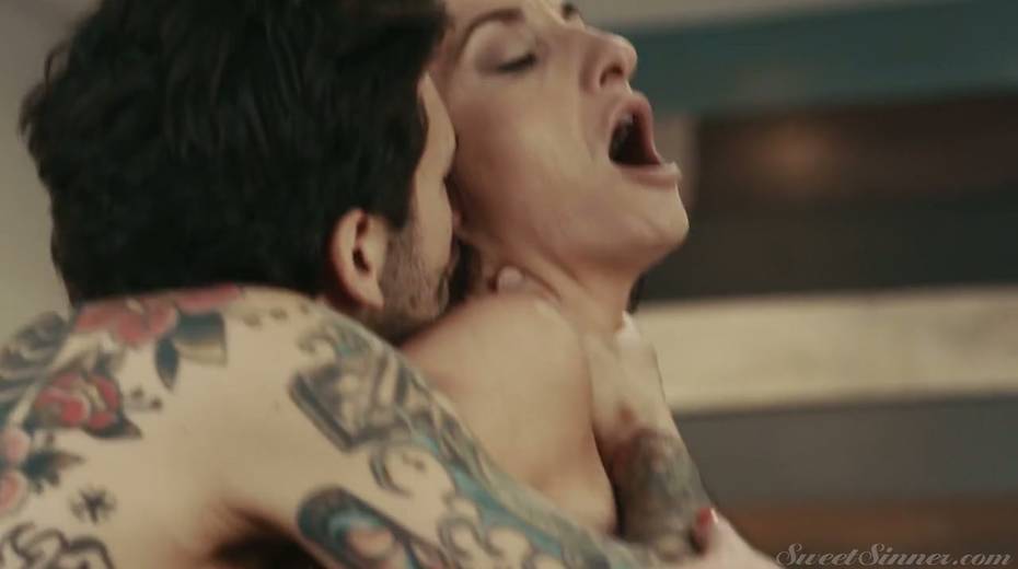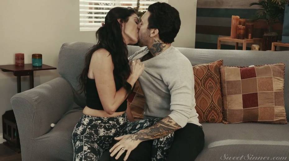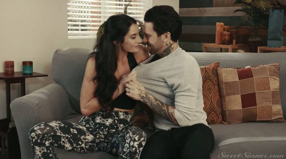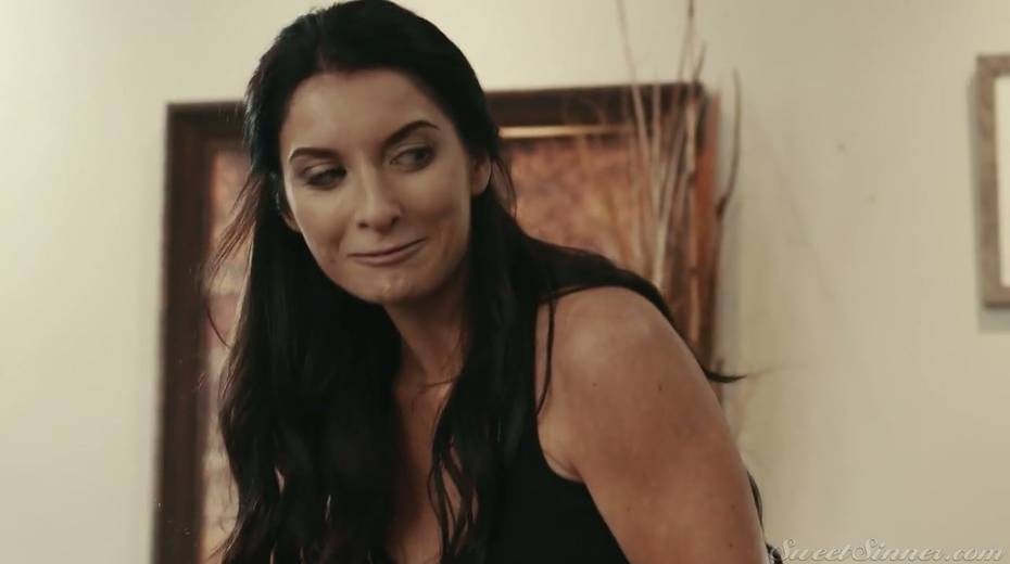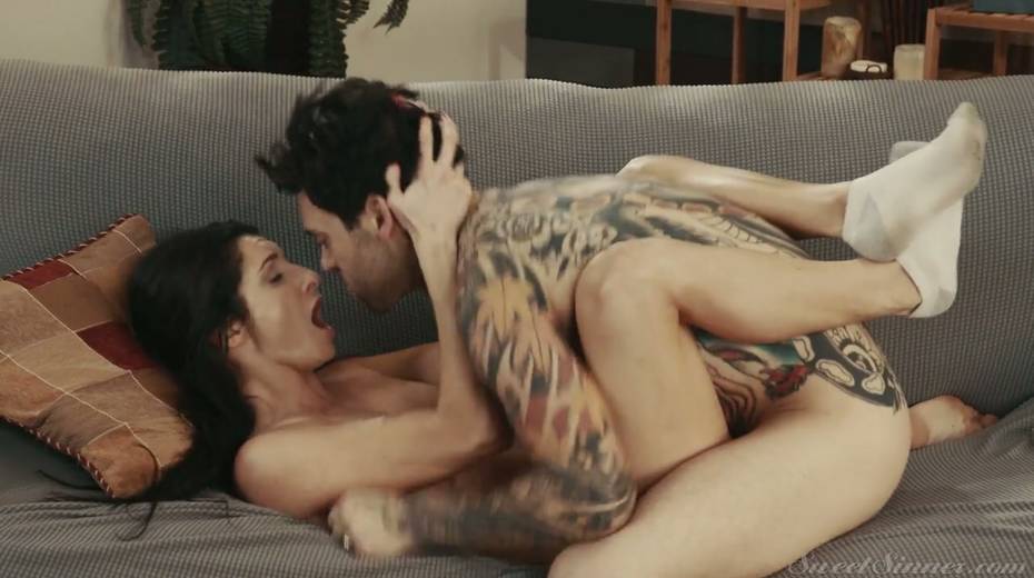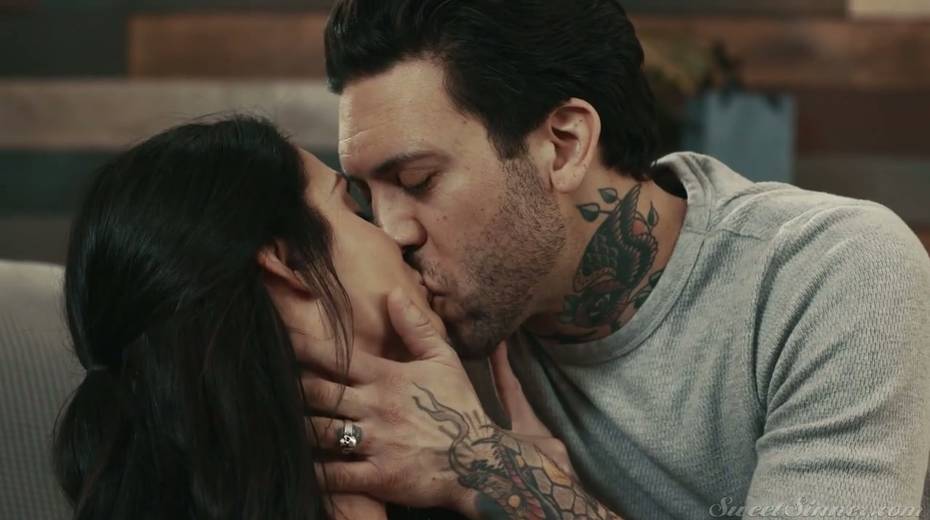 Gorgeous brunette Silvia Saige takes cumshots on her big boobs with perky nipples