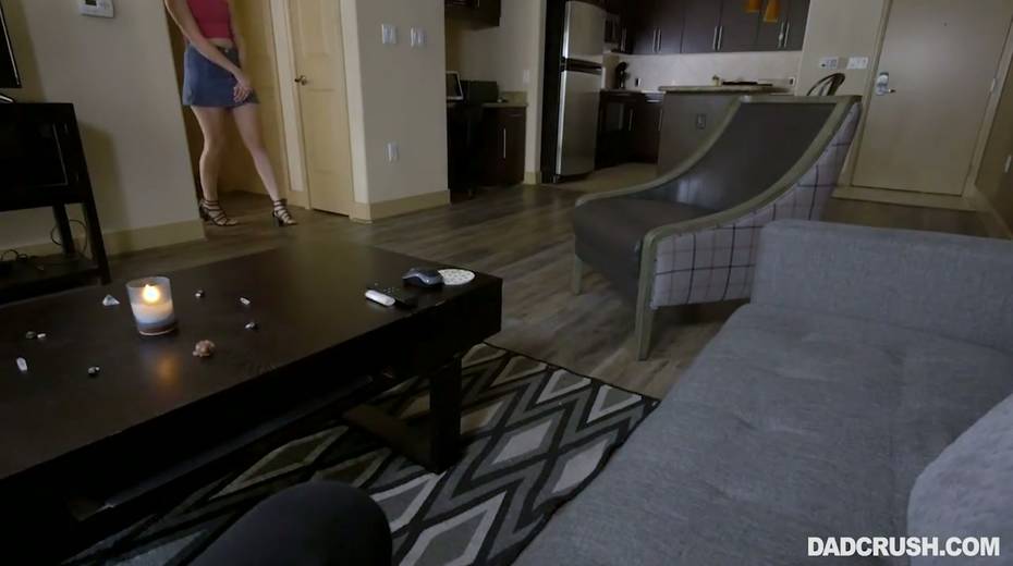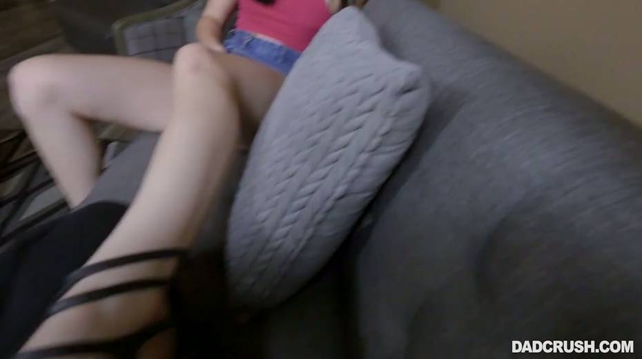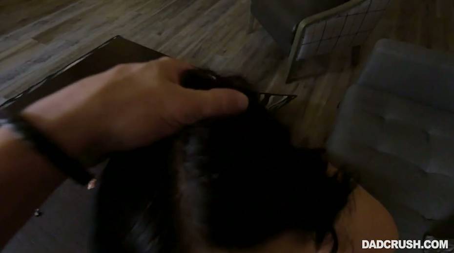 Smiling teen Violet Rain is sucking stepdad's cock in hot POV clip
