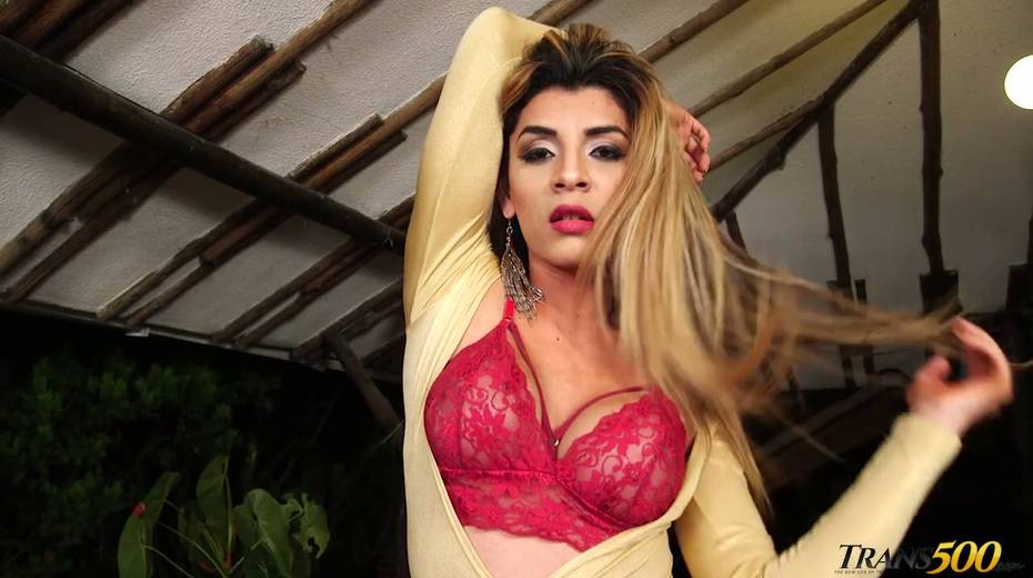 Fake tittied ladyboy Valentina Hott is playing with hard and thick cock