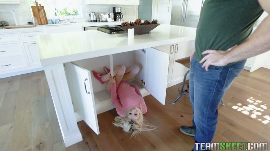 Playful teen Kenzie Reeves gets in stepdad's pants and sucks his hose