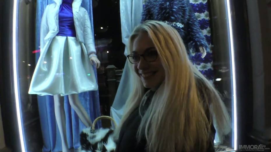College chick in short kilt skirt Sofia Knox hooks up with one kinky dude
