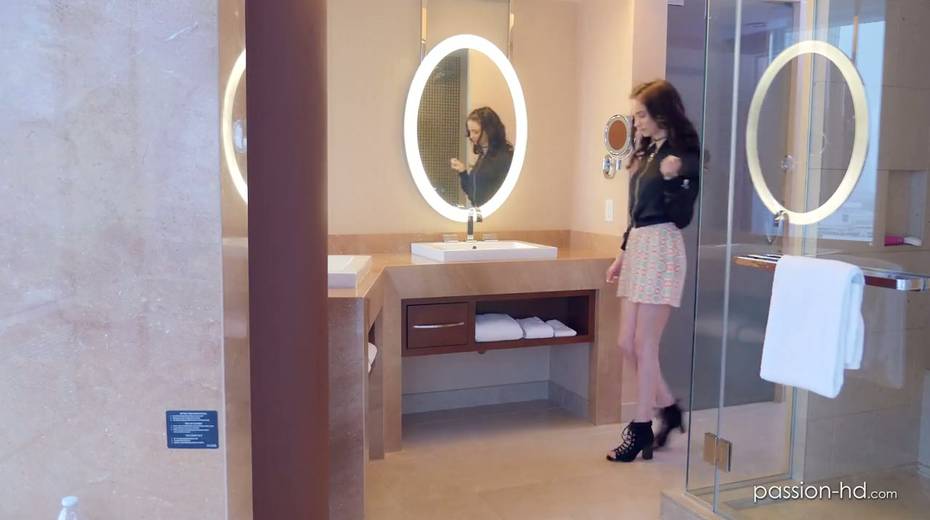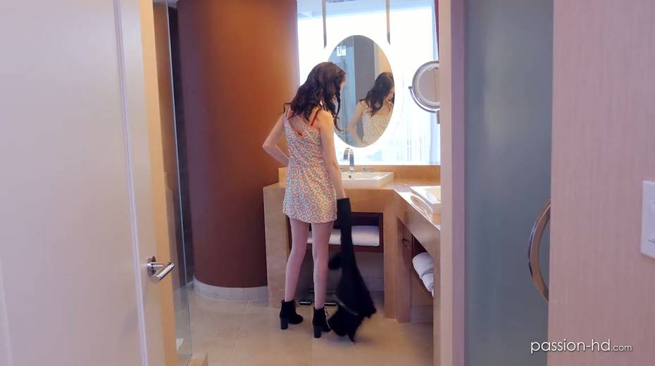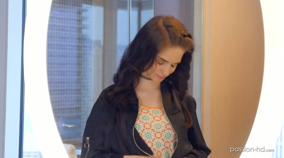 Pretty brunette Lana Adams rides a dick face to face and gets doggy fucked