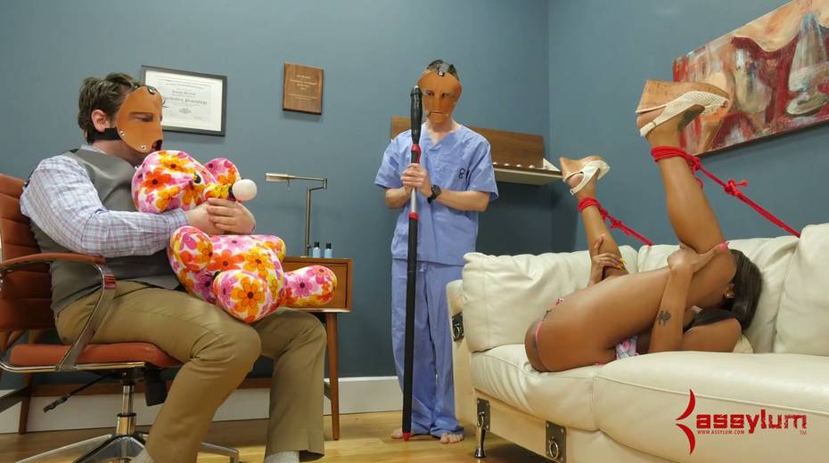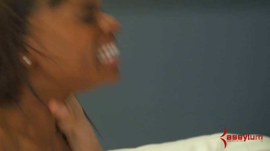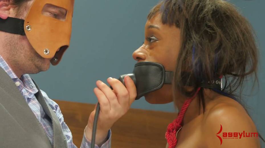 Ebony tied up hooker gives a rimjob after a rough anal pounding