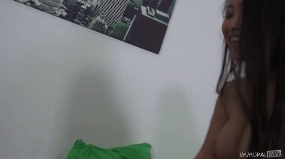 Eye catching busty and bootyful Asian babe Sharon Lee gets laid and gives her head