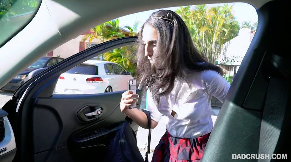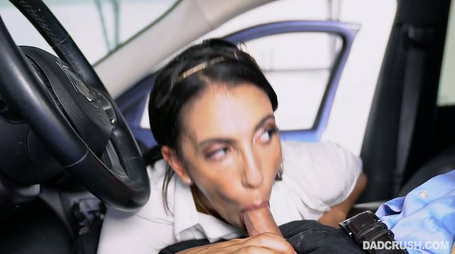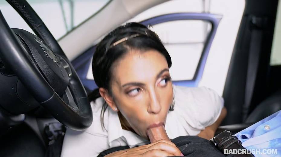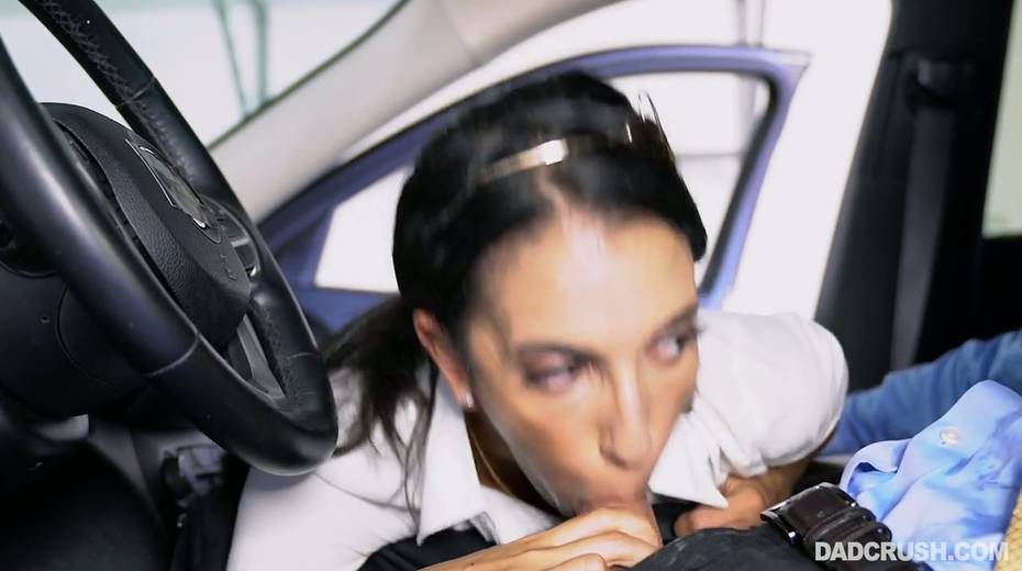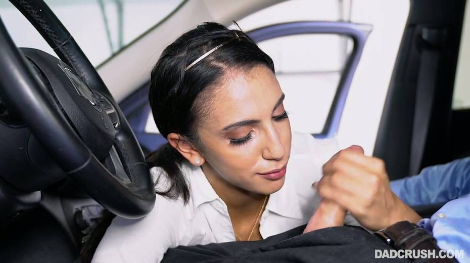 Filthy stepdaughter Angelica Cruz gives a good blowjob in the car