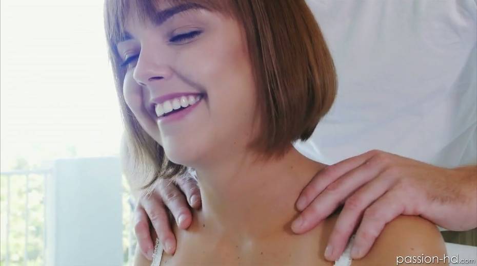 Cute smiling babe Dillion Harper is face fucked and banged on the massage table