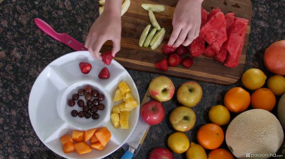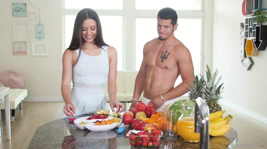 Flexible girlfriend Lucy Doll does the splits and blows boyfriend's dick