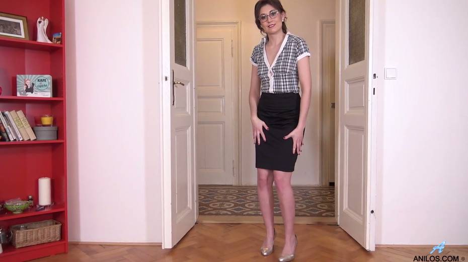 Sex-starved Czech chick in glasses Meggie Marika plays with her hairy muff