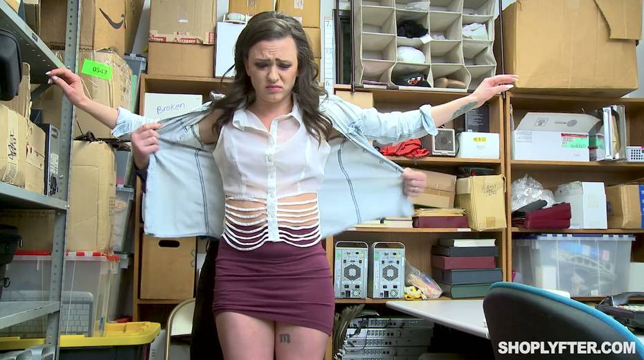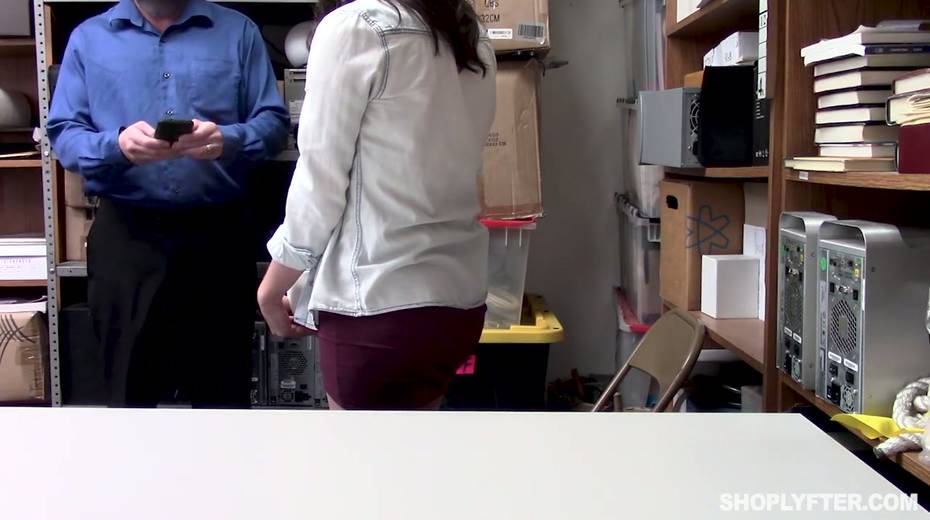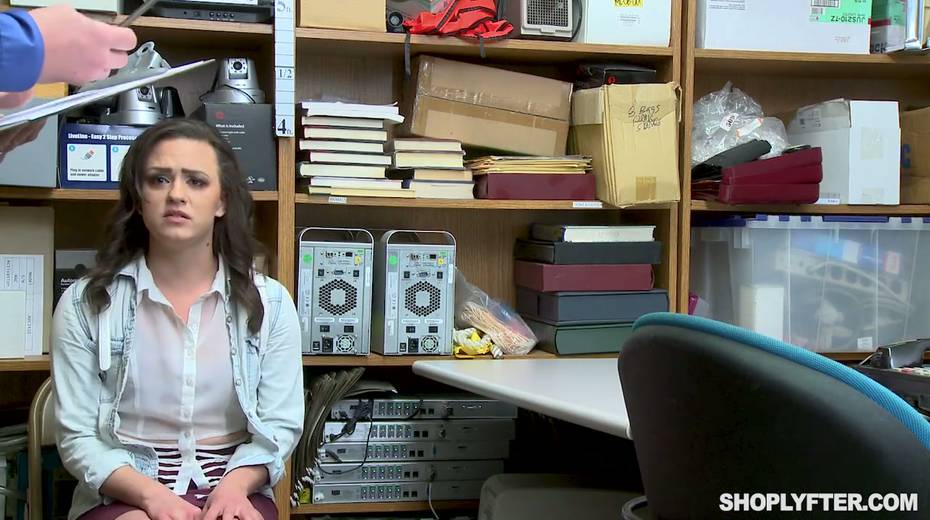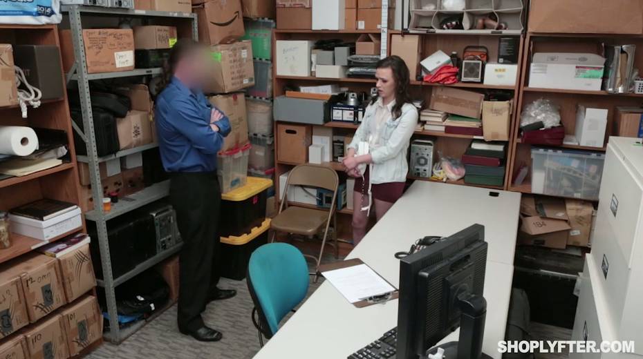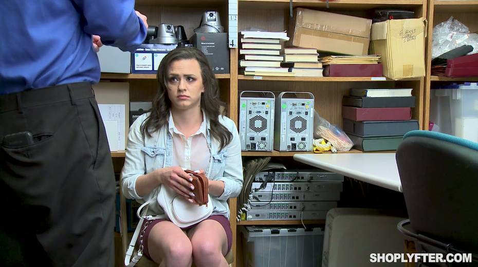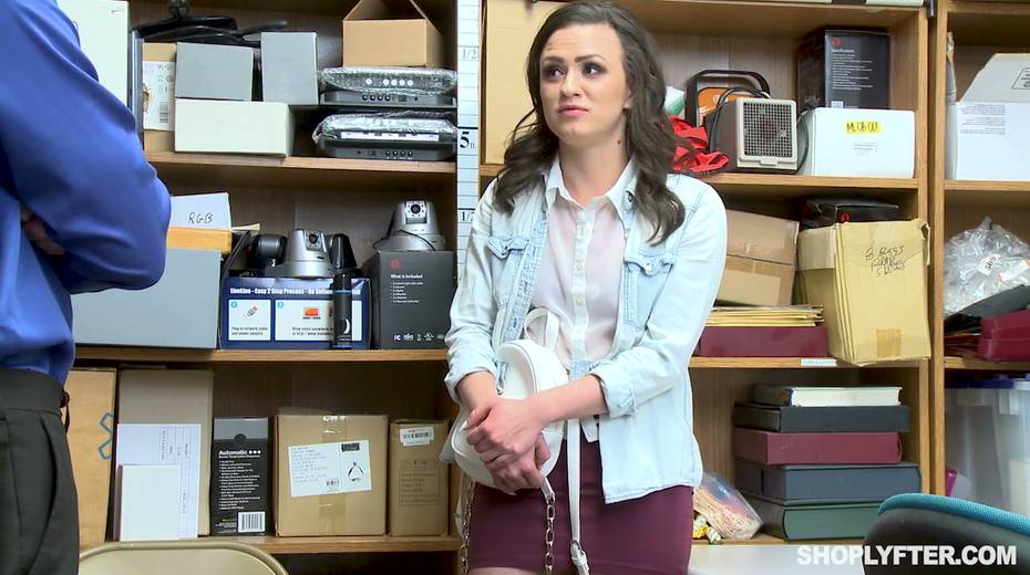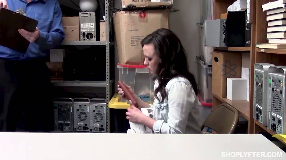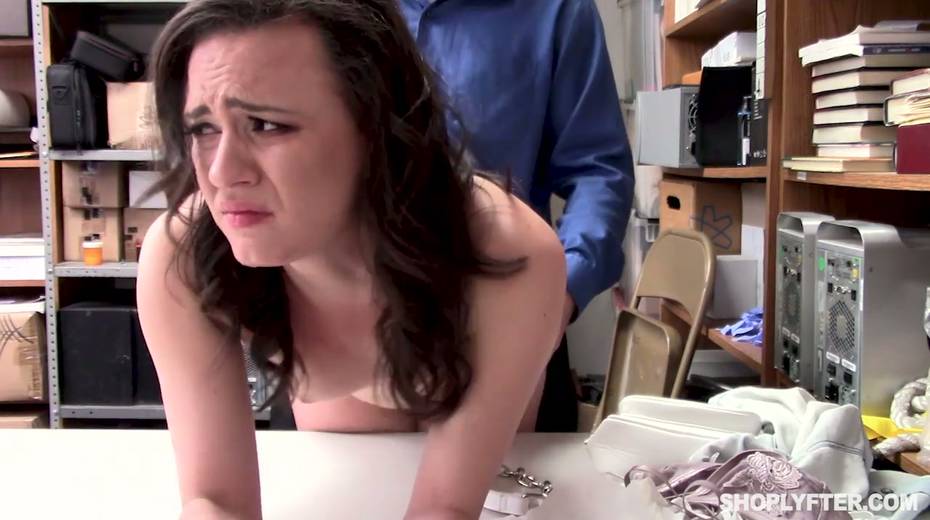 Pretty hot brunette Alex More is punished hard for shoplifting