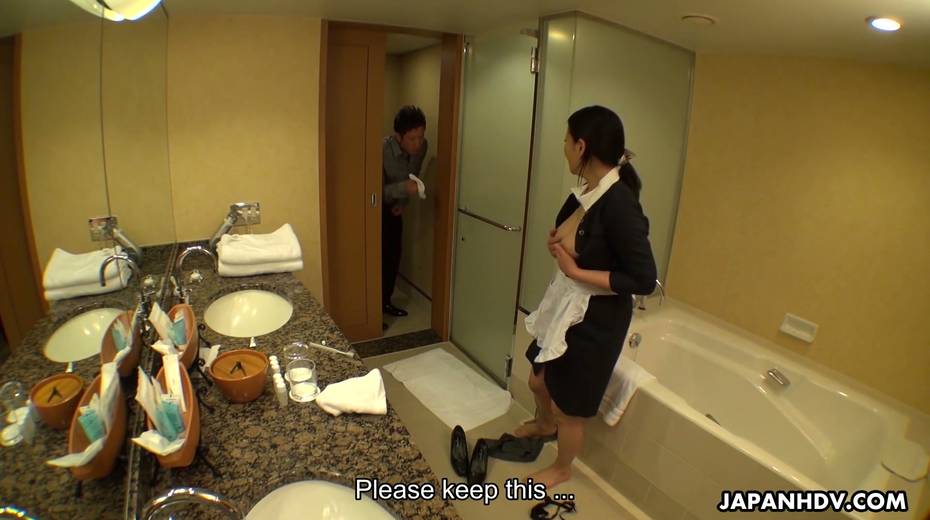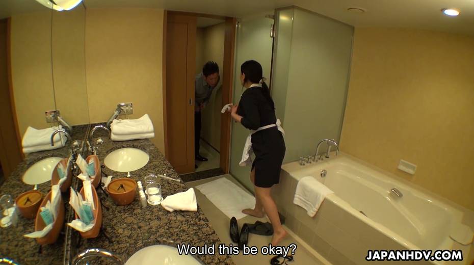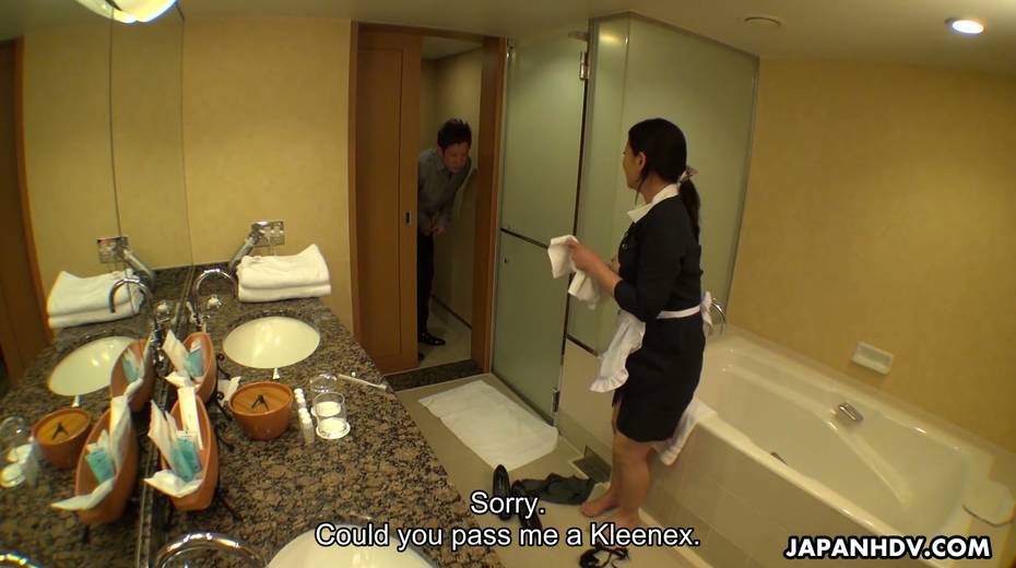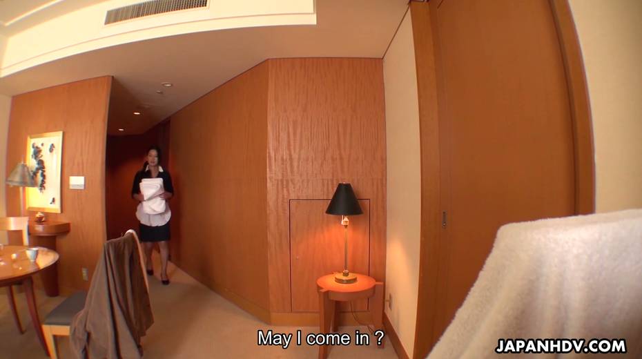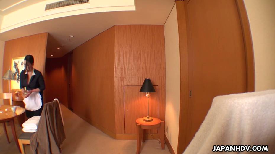 Juggy maid in uniform Rei Kitajima masturbates cunt while cleaning
