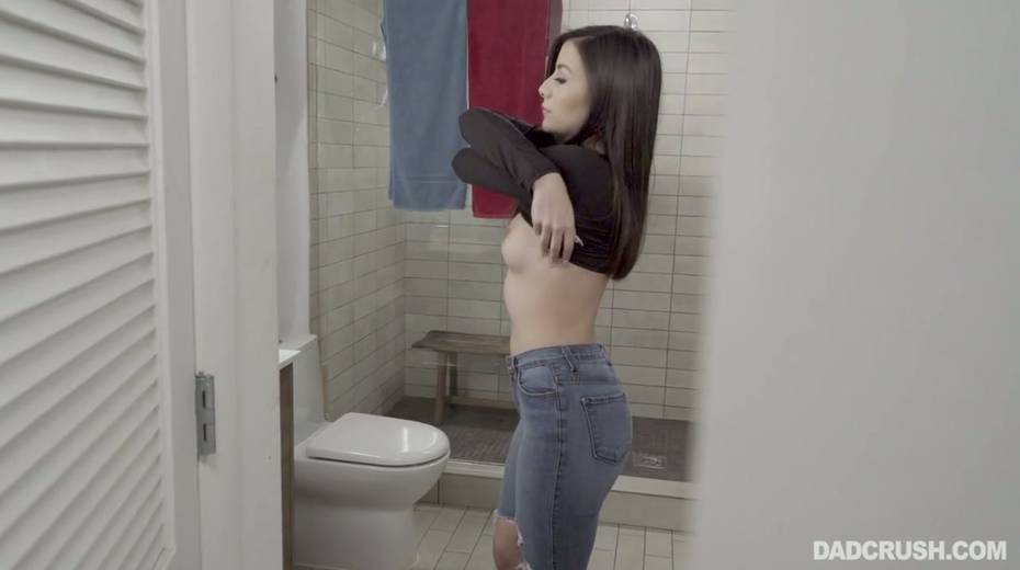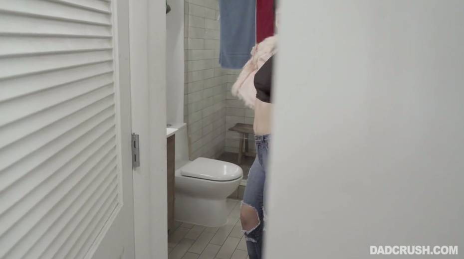 Stepdad caught Natalie Brooks masturbating her snatch in the bathroom