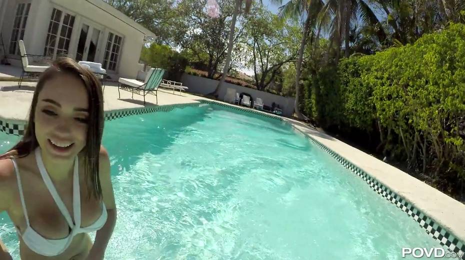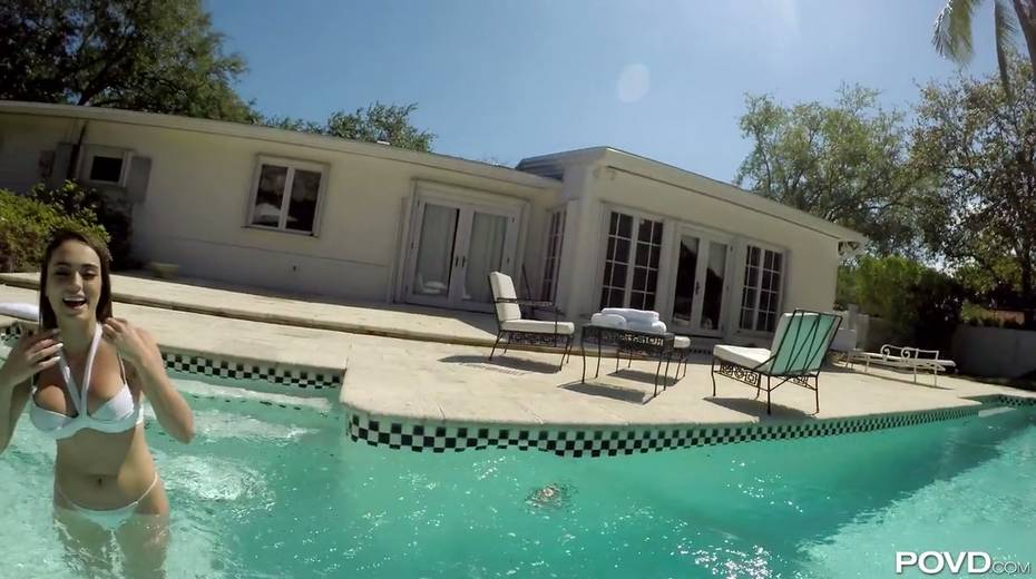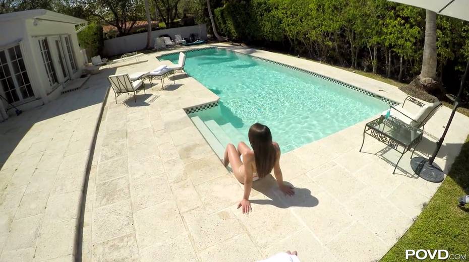 Naughty babe Ashly Anderson is fucked by hot blooded boyfriend by the poolside