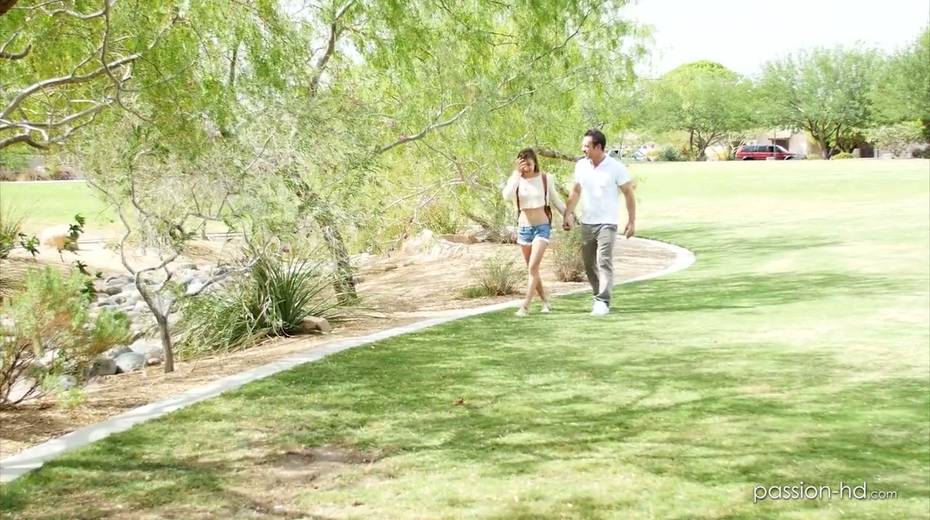 Beautiful babe Avery Moon is making love with her new BF on the first date