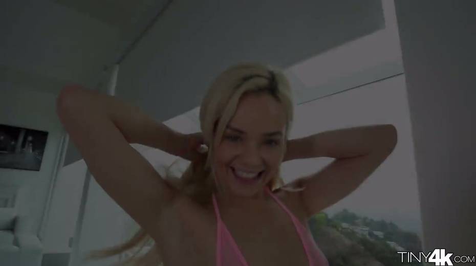 Petite blond girlfriend Elsa Jean is impaled on a heavy hard pole