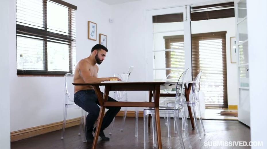 Submissive girlfriend Sofie Reyez gives a deepthroat blowjob under the table