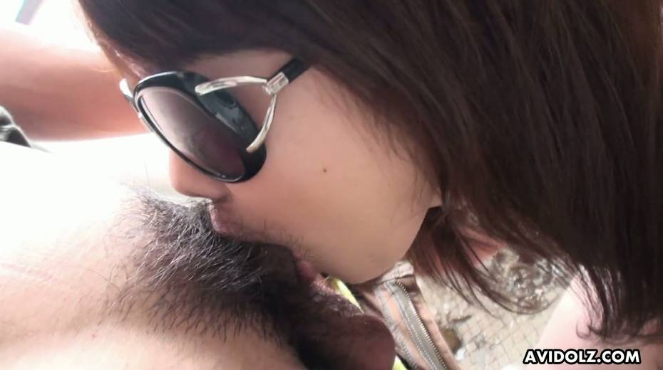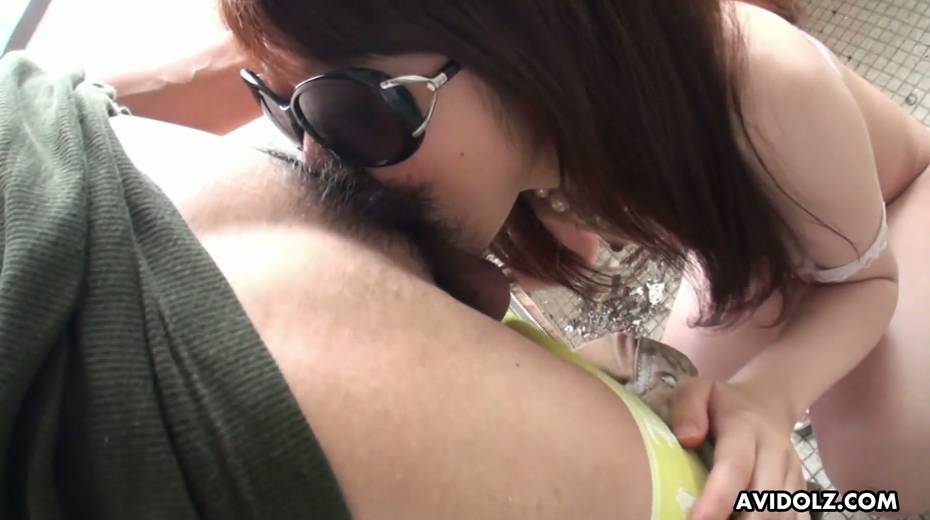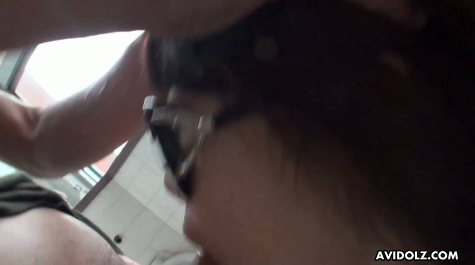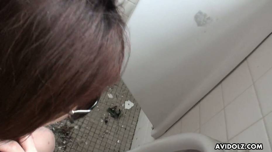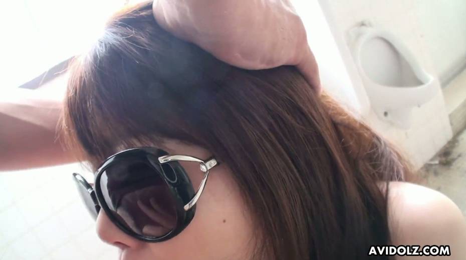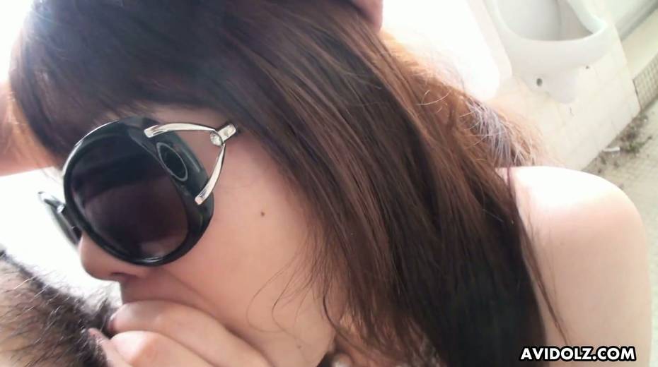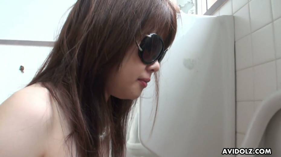 Japanese chick Kazumi Saijo pisses during masturbation and gives a blowjob in the toilet