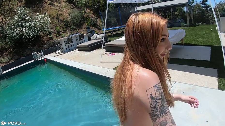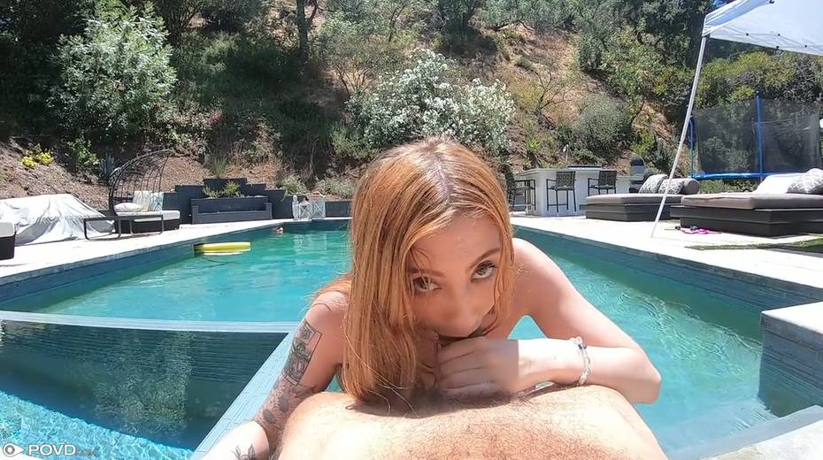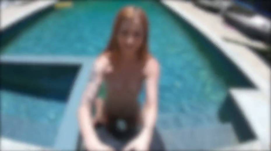 Slim red haired chick Megan Winters sucks a dick and gets nailed by the poolside