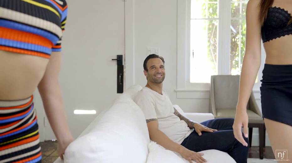 Two sizzling babes give a blowjob and get their slits nailed hard