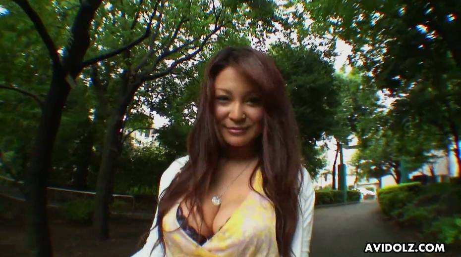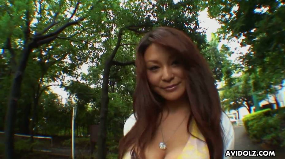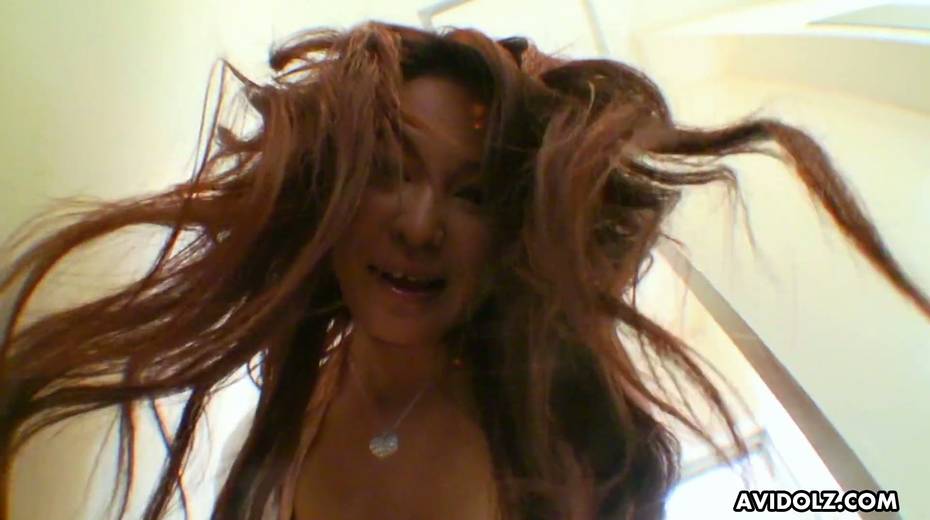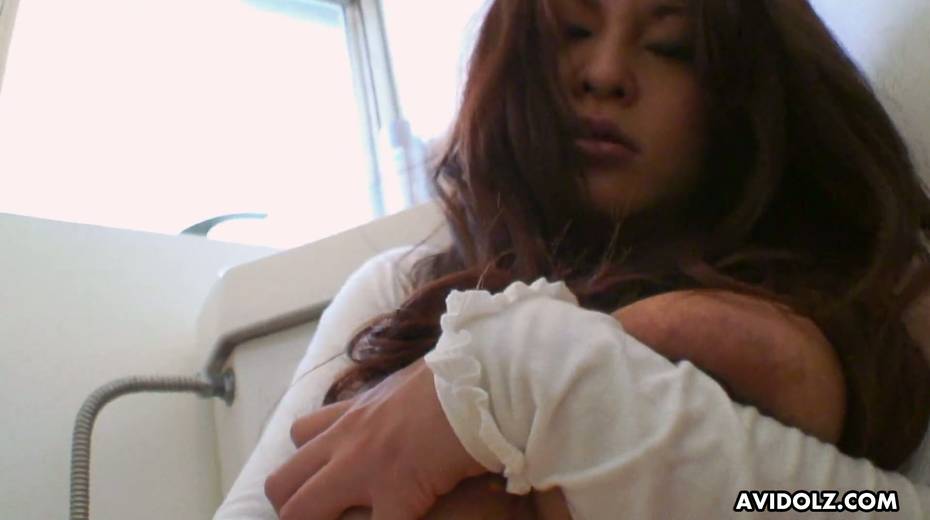 Jaw dropping bosomy Asian chick Airi Ai is playing with her hairy snatch