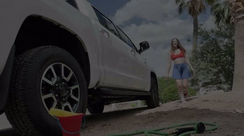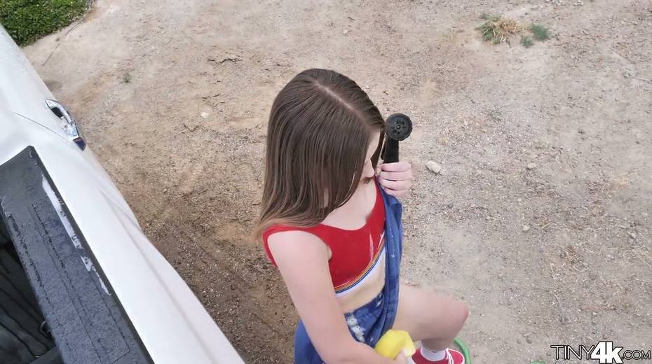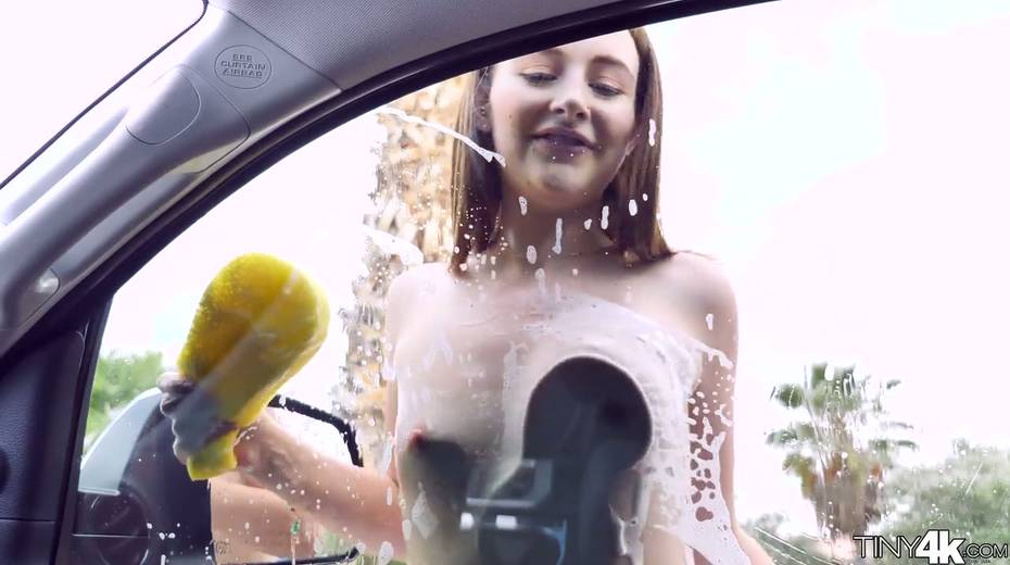 Petite car washing chick Danni Rivers gives her head and gets fucked on car hood